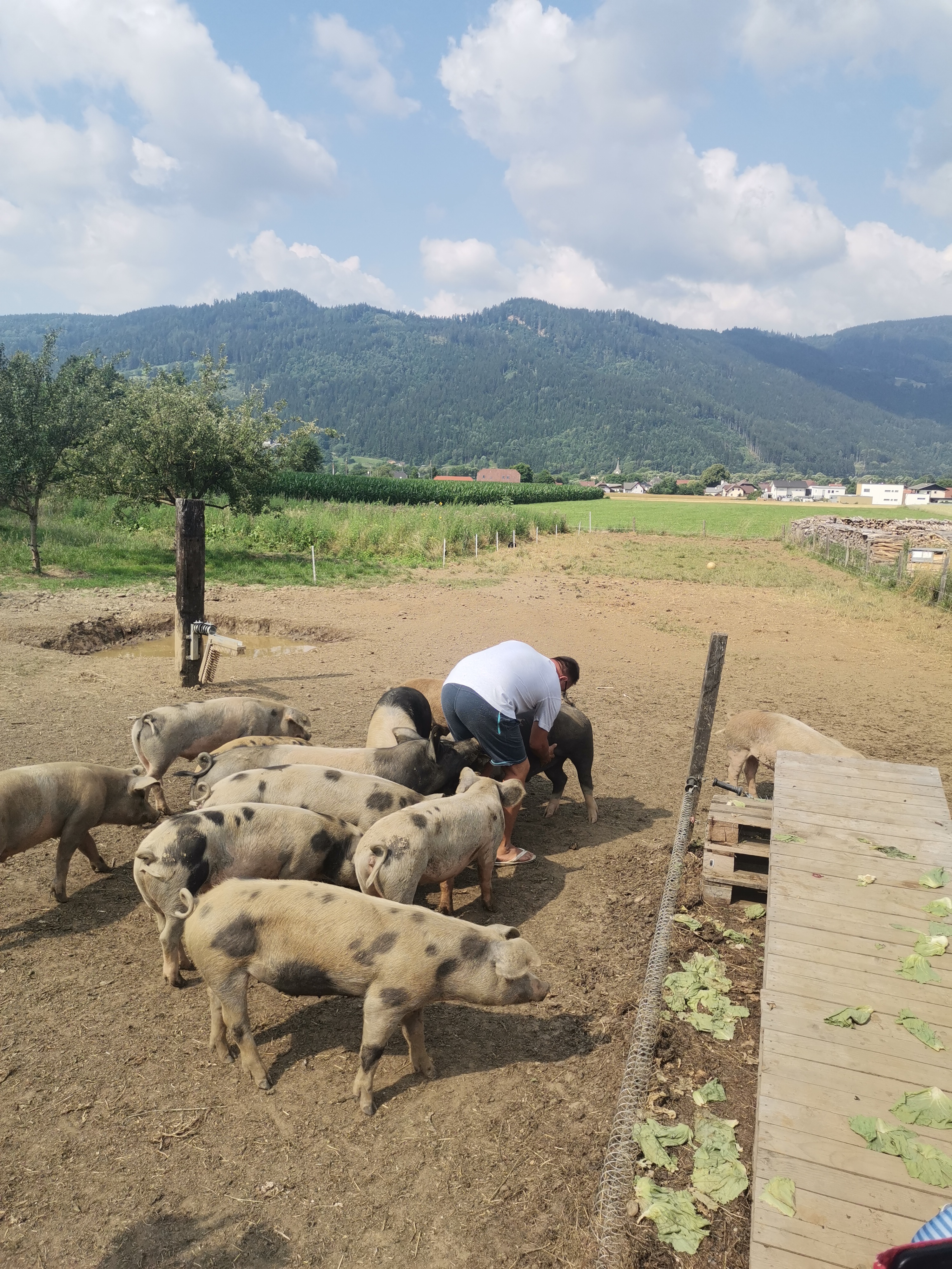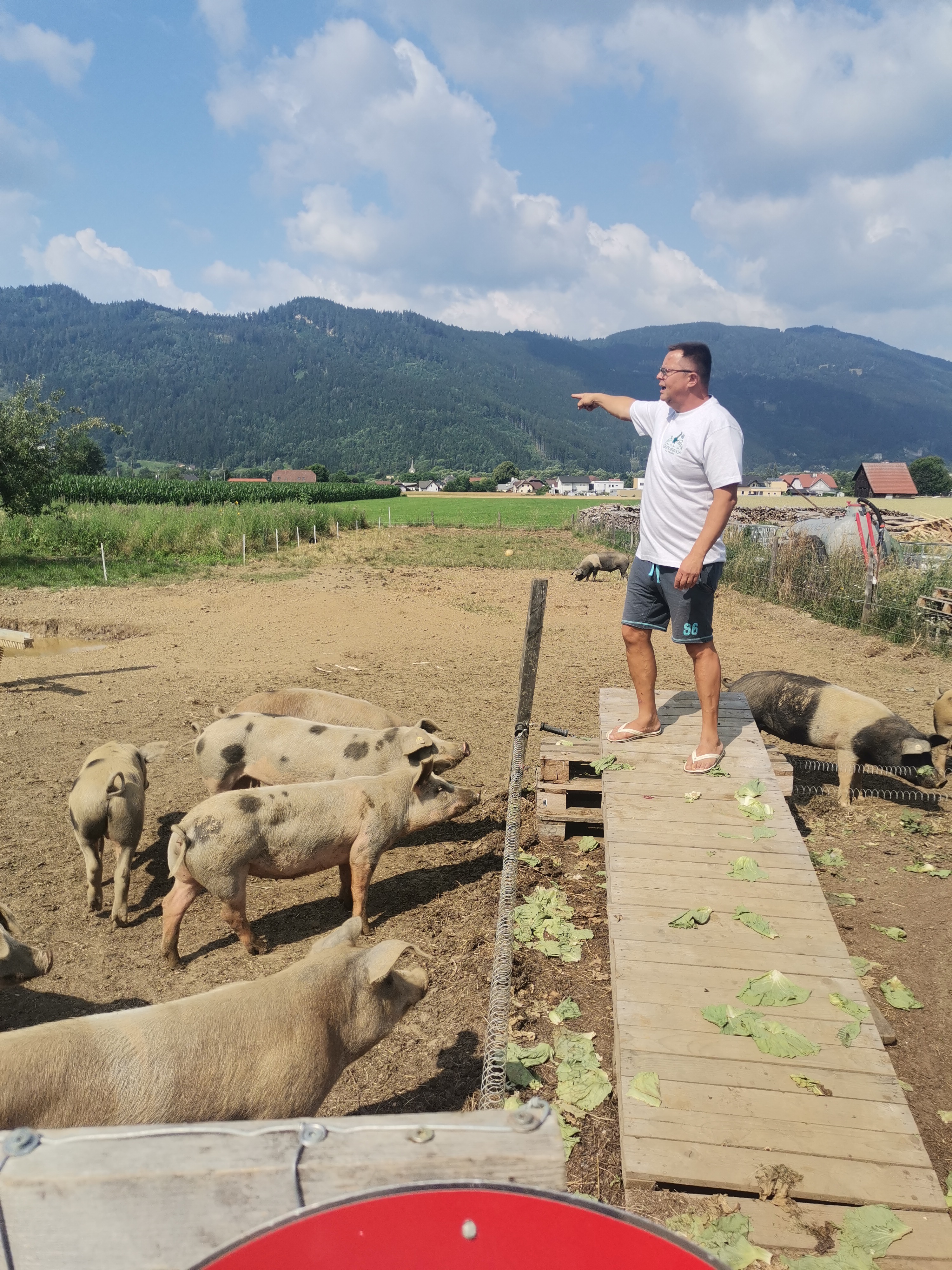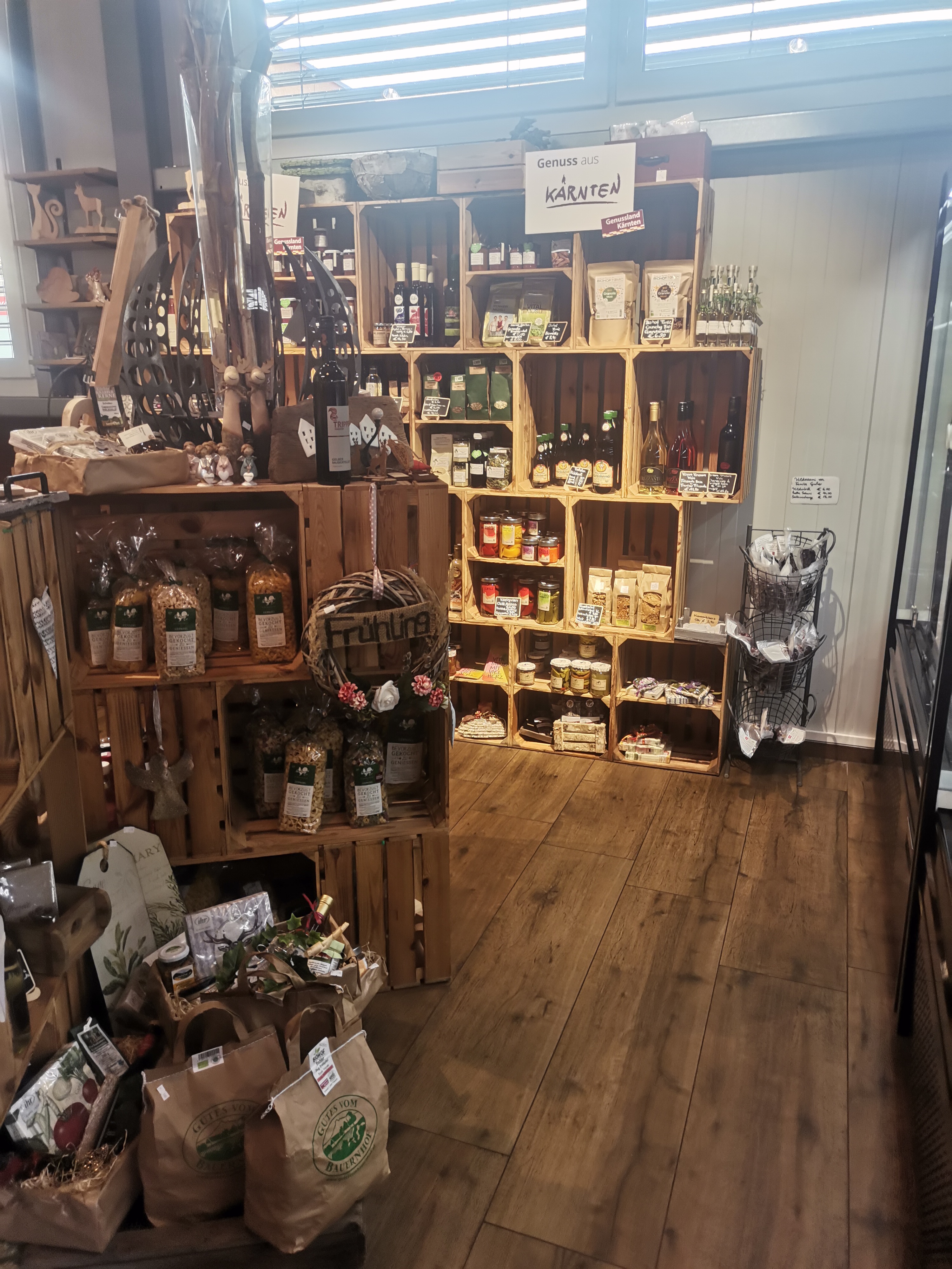 Unsere zweite Station war der Genusshof Friesach, der liebevoll von der Familie Krammer-Eder geführt wird. Dort werden Tiere noch respektvoll behandelt. Es gibt einen 24-Stunden Hofladen, wo man verschiedene selbst hergestellte Leckereien kaufen kann. Noch dazu wurden wir dort auch mit Speckbroten, Apfelsaft und Apfelmost verwöhnt.