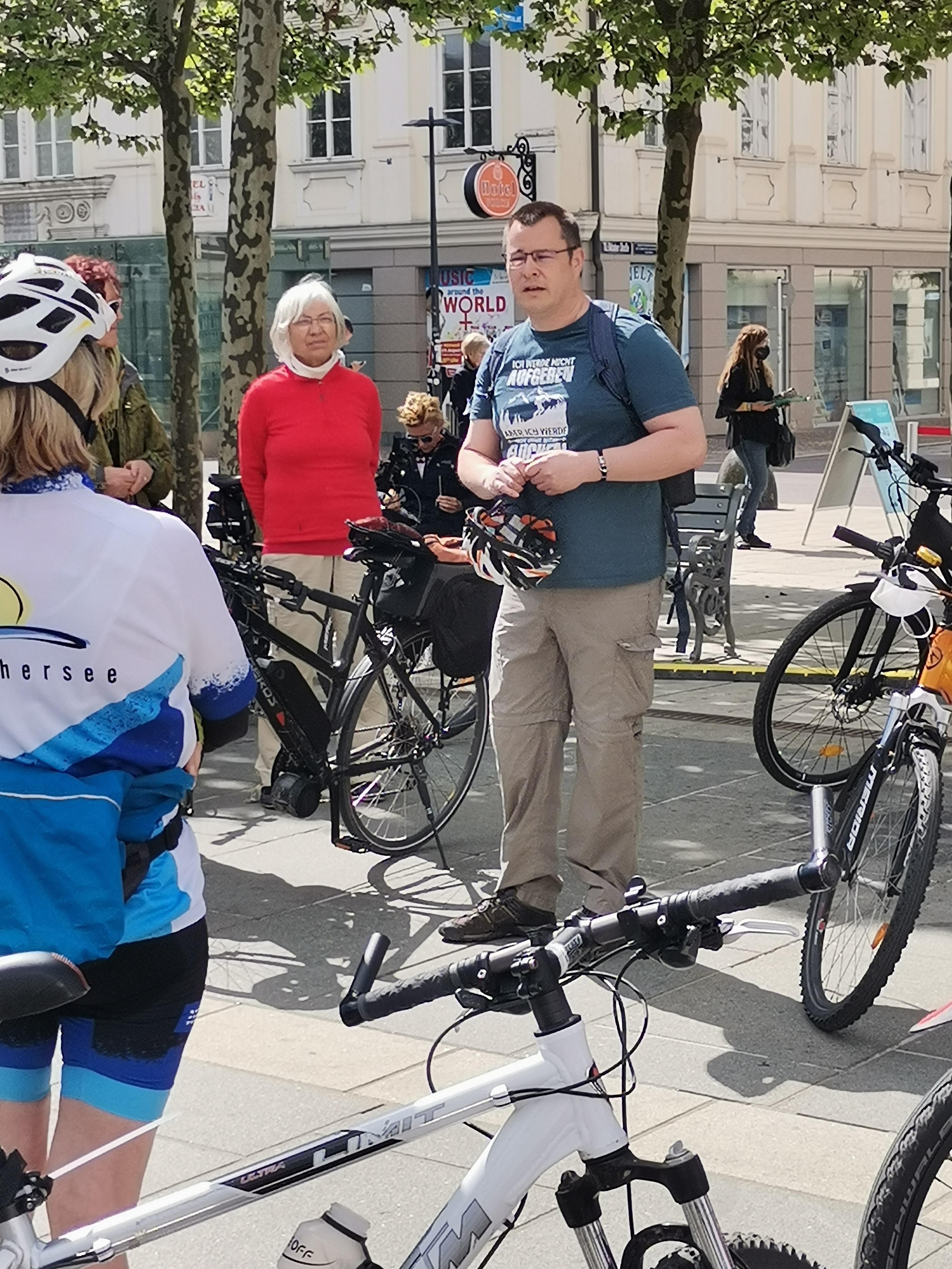 Alle konnten es kaum erwarten, in diesem Jahr wieder auf das Fahrrad zu steigen und gemeinsam etwas zu unternehmen. Und so haben sich ganze 30 Teilnehmer/innen am Neuen Platz eingefunden, um gemeinsam mit Referent Georg Lux auf eine Reise zu den Vergessenen Orten in Klagenfurt zu unternehmen. Aufgrund des großen Andrangs wird die Tour am Sonntag, den 1. August 2021 wiederholt.