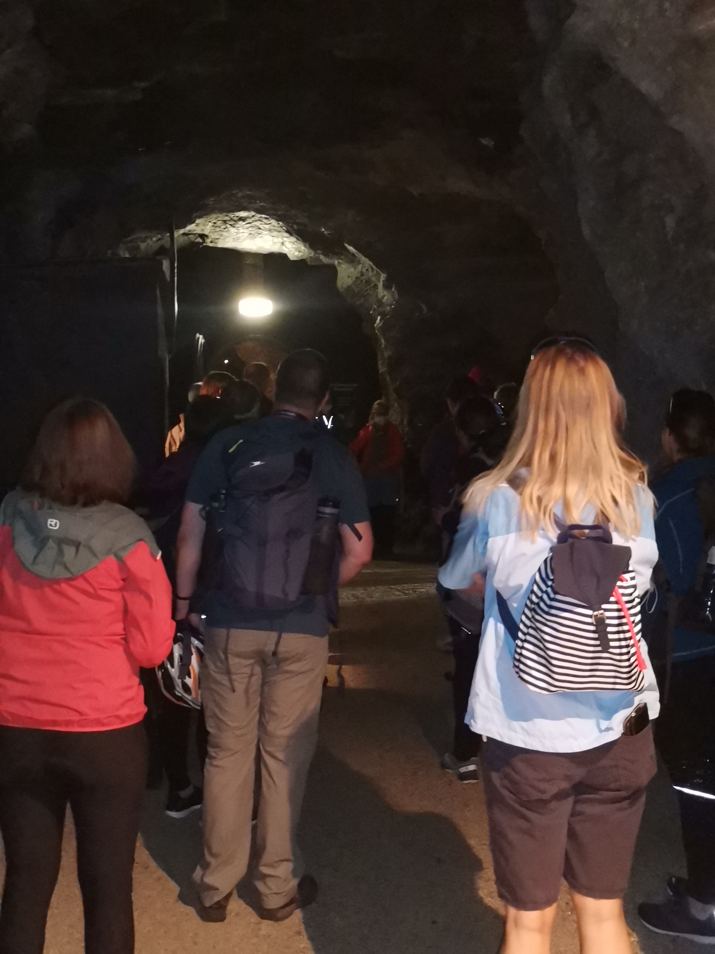 Unsere 1. Station war das einstige Bergbaumuseum im Botanischen Garten. Ursprünglich im Zweiten Weltkrieg als unterirdisches Krankenhaus für etwa 4.000 Personen geplant, dann als Luftschutzbunker für 20.000 Menschen genutzt und später als Bergbaumuseum eingerichtet, liegt die mystische Unterwelt nun seit einigen Jahren im Dornröschenschlaf.