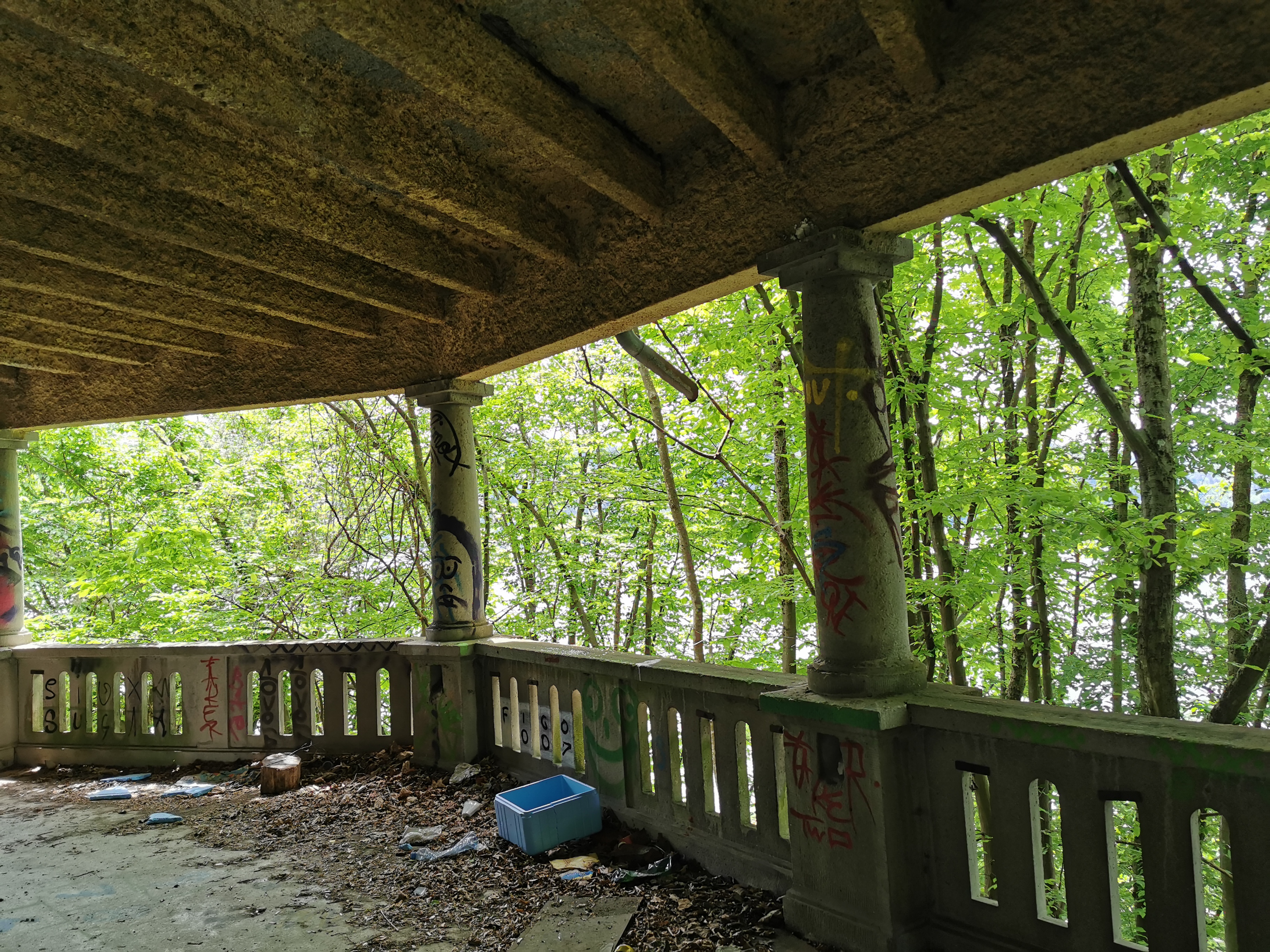 Unsere 2. Station bildete das verwunschene Schloss Hotel Wörthersee, das in der Klagenfurter Ostbucht über dem Wörthersee thront und dem Verfall preisgegeben wurde.