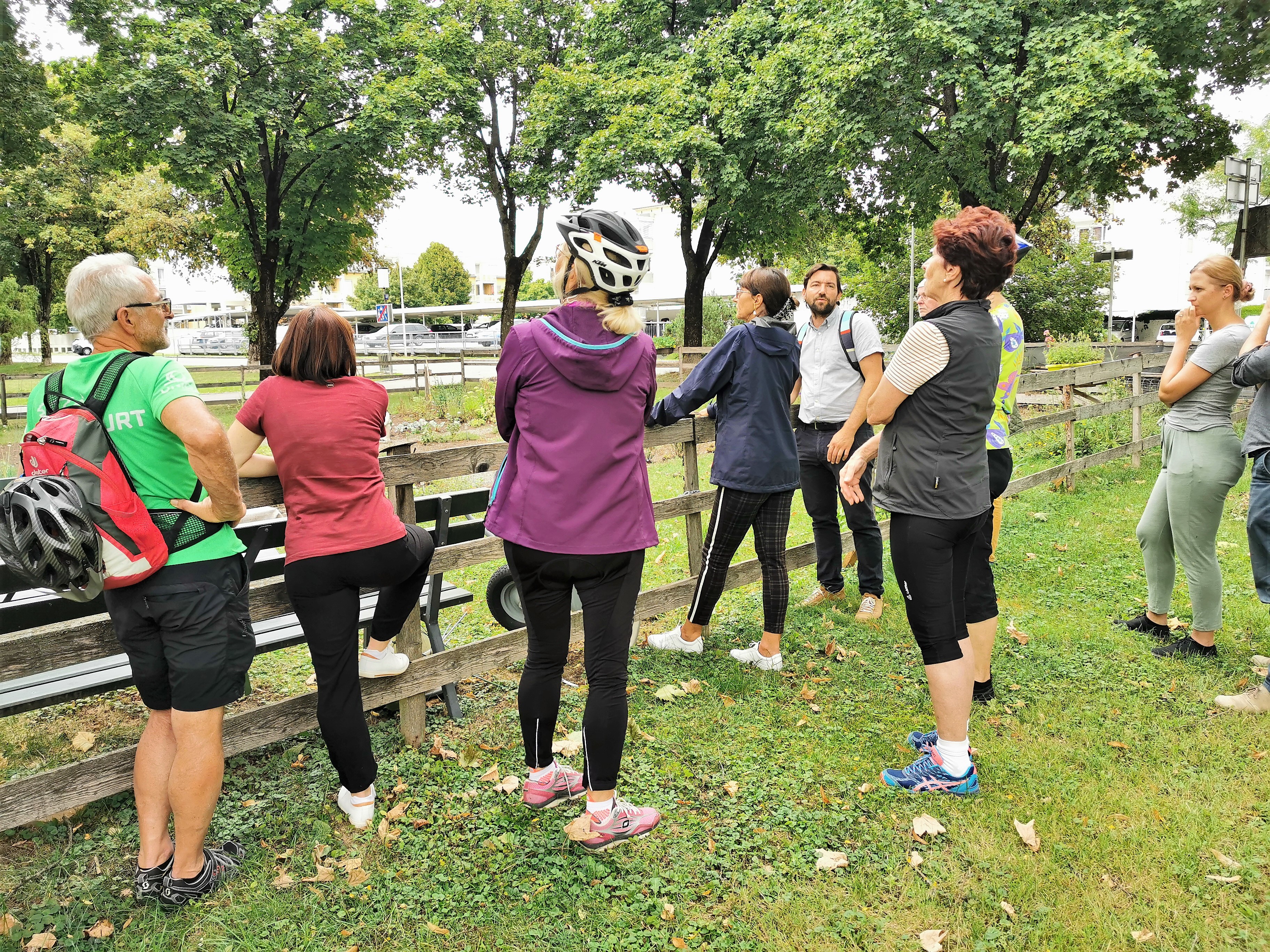 Unser heutiger Referent Elias Molitschnig konnte uns bei diesem KULTUR RAD PFAD vielfältige und höchst interessante Informationen zu den Themen Wohnbau und Stadtplanung vermitteln und uns gleichzeitig rechtliche und politische Hintergründe erläutern. Das Ziel, den Autoverkehr in den Städten einzudämmen, um Fußgängern und Radfahrern mehr Raum zu schaffen, wurde schon bei unseren ersten Stopps, dem Lebensraum Bahnhofstraße und dem Pfarrplatz, rege diskutiert. Nach einem kurzen Halt im Architekturhaus besichtigten wir die Sozialwohnbauprojekte „Wohnen an der Glan“ und „Einigkeitsstraße“. Beide Projekte zeigen eindrucksvoll, dass sozialer Wohnbau bei perfekter Planung und dem Einsatz der richtigen Materialien ein hohes Maß an Wohn- und Lebensqualität zu leistbaren Preisen bieten kann. Nach der Mittagspause in der Reiterklause durfte natürlich die Besichtigung des noch in Bau befindlichen Großprojektes Harbach nicht fehlen. Den Abschluss unserer „ArchitekTour“ bildete ein schon etwas älteres, aber durchaus qualitätsvolles Wohnprojekt in der Leutschacher Straße.