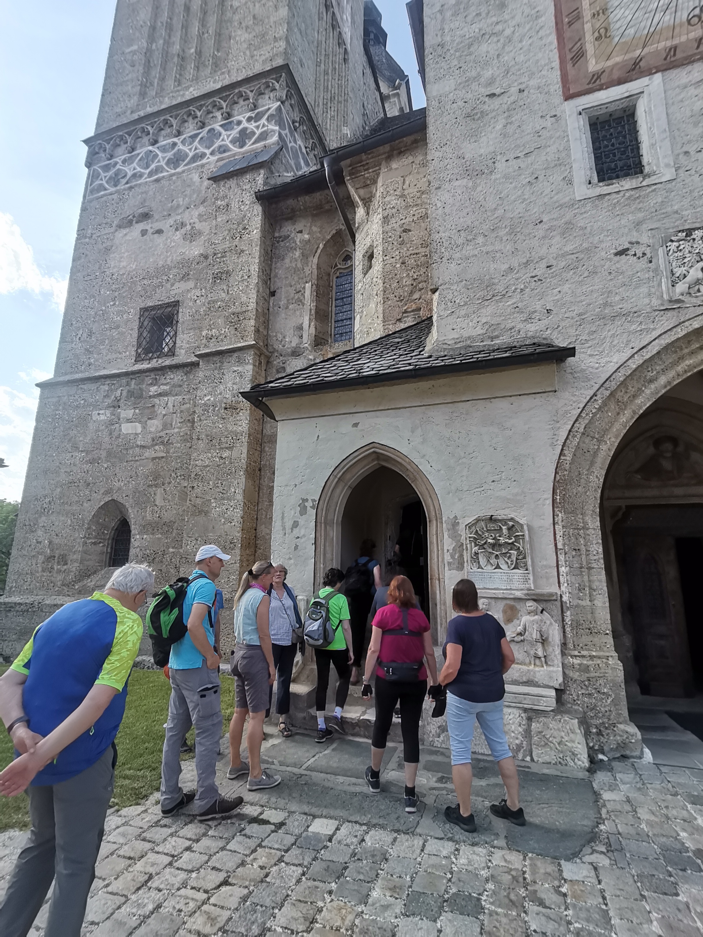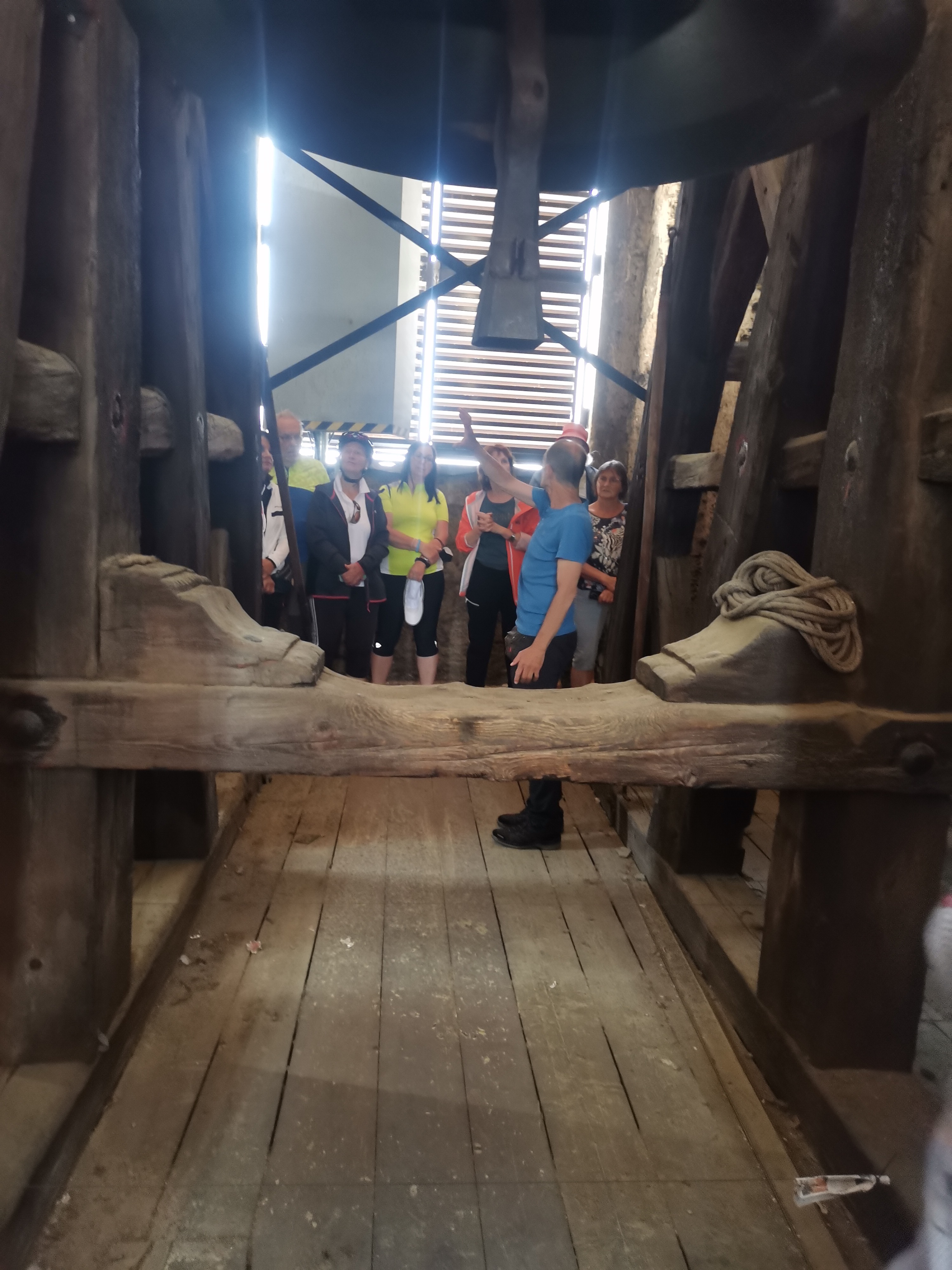 Ein erstes Highlight war der Aufstieg in den Stadtpfarrturm St. Egyd, wo wir der großen „Heimatglocke“ ganz nah kommen durften. Die mächtigen Holzkonstruktionen, die das Gewicht und den „Schwung“ der Glocken aushalten müssen, sind schon sehr beeindruckend.