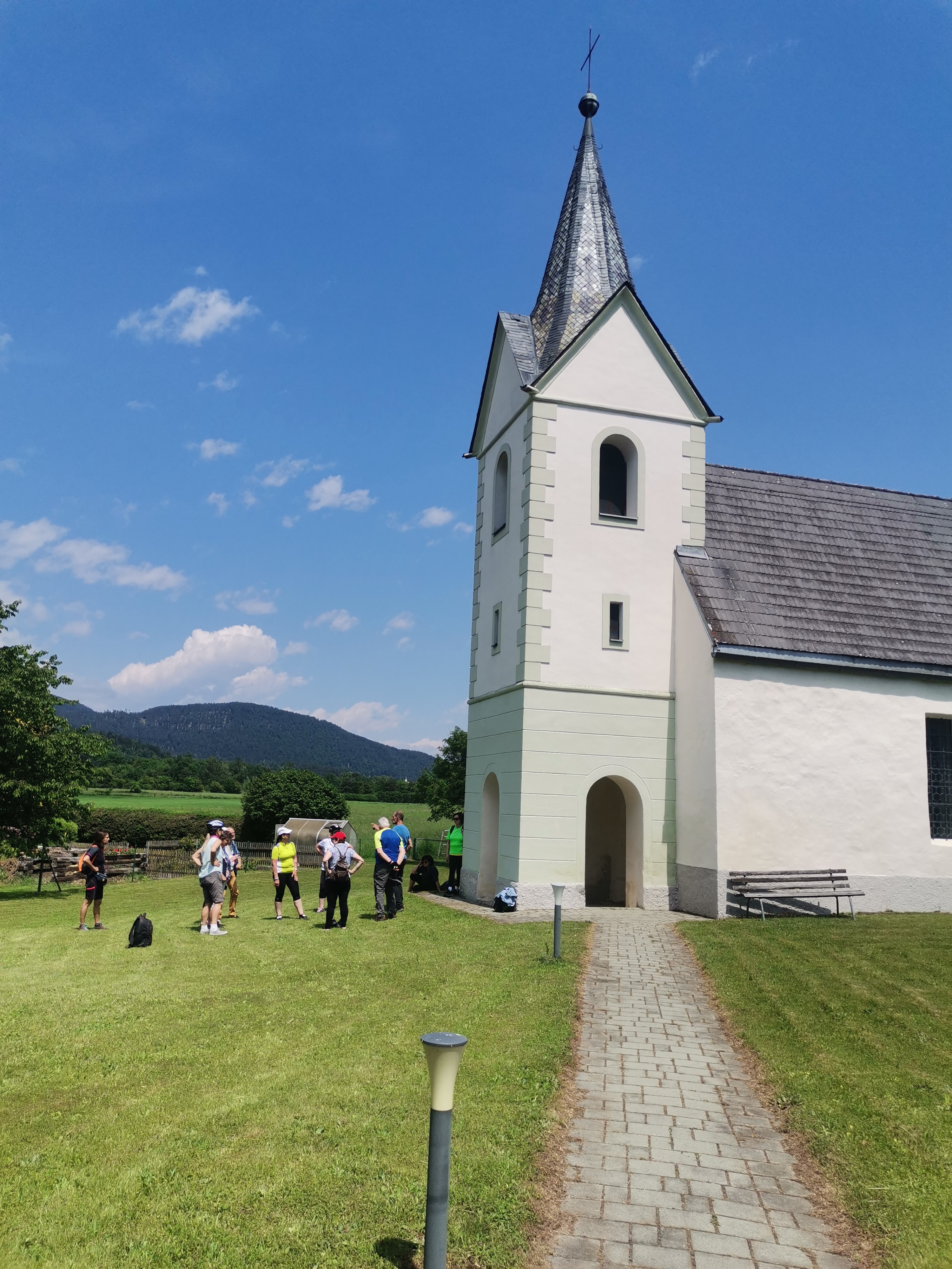 Vor unserer Mittagspause beim Gasthaus Puck im Zollfeld, wurden wir auf dem steil ansteigenden Weg zur ehemaligen Pfalzkirche Karnburg vom Messner eingeläutet.
