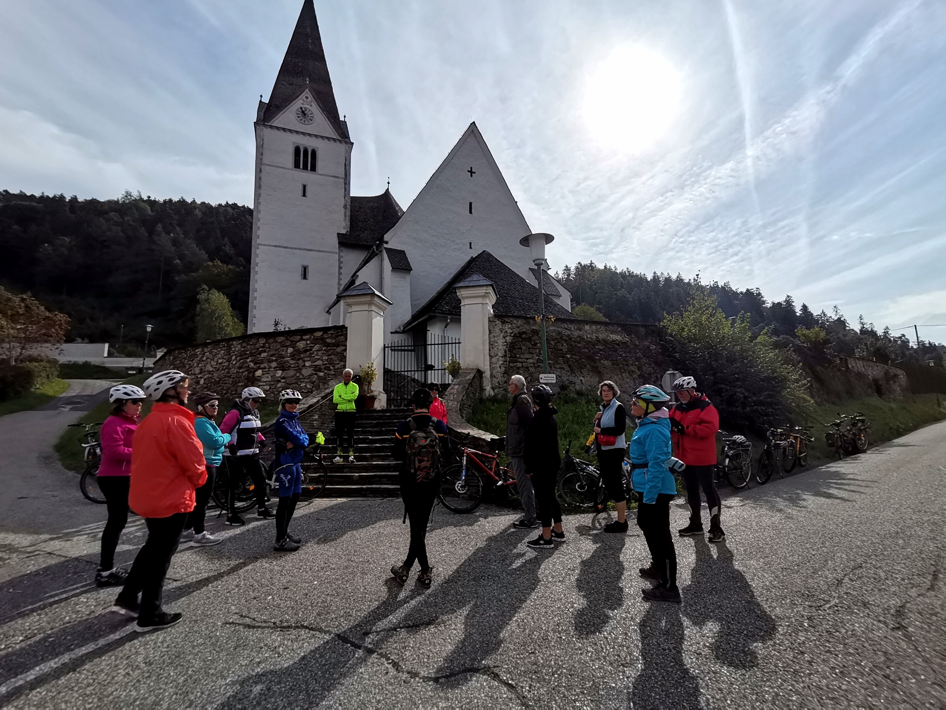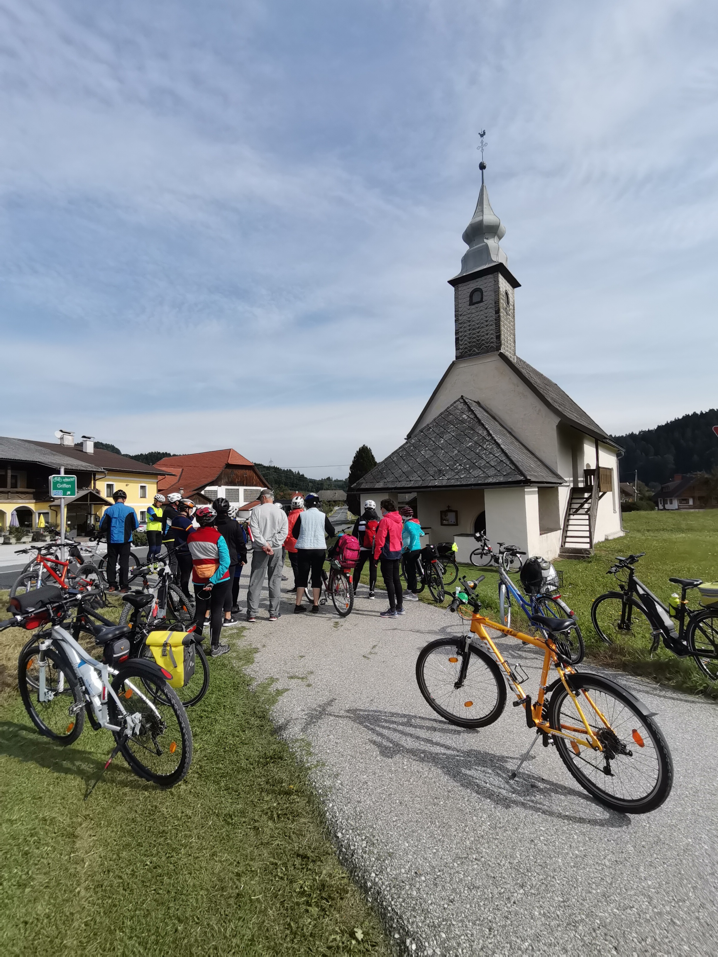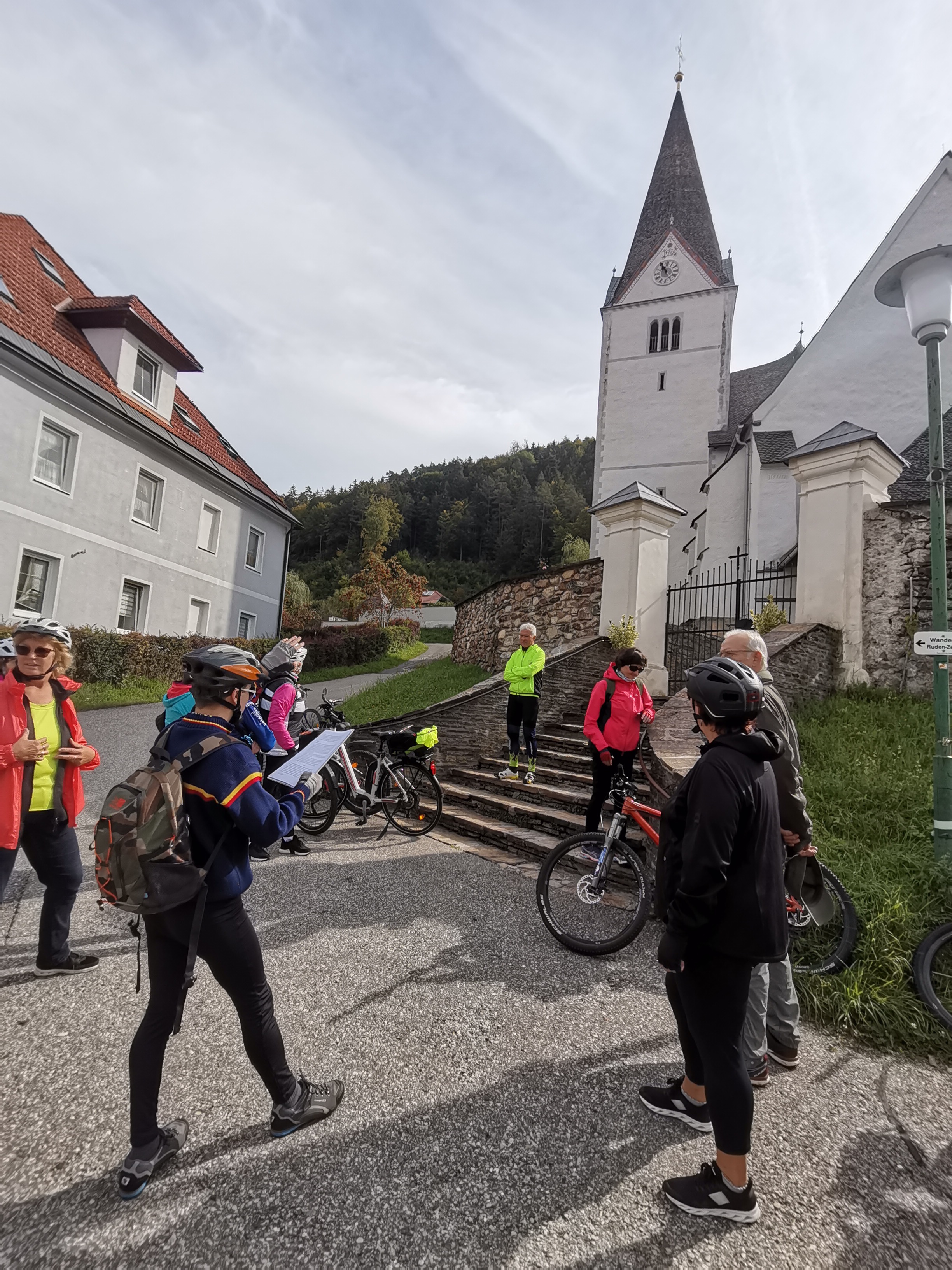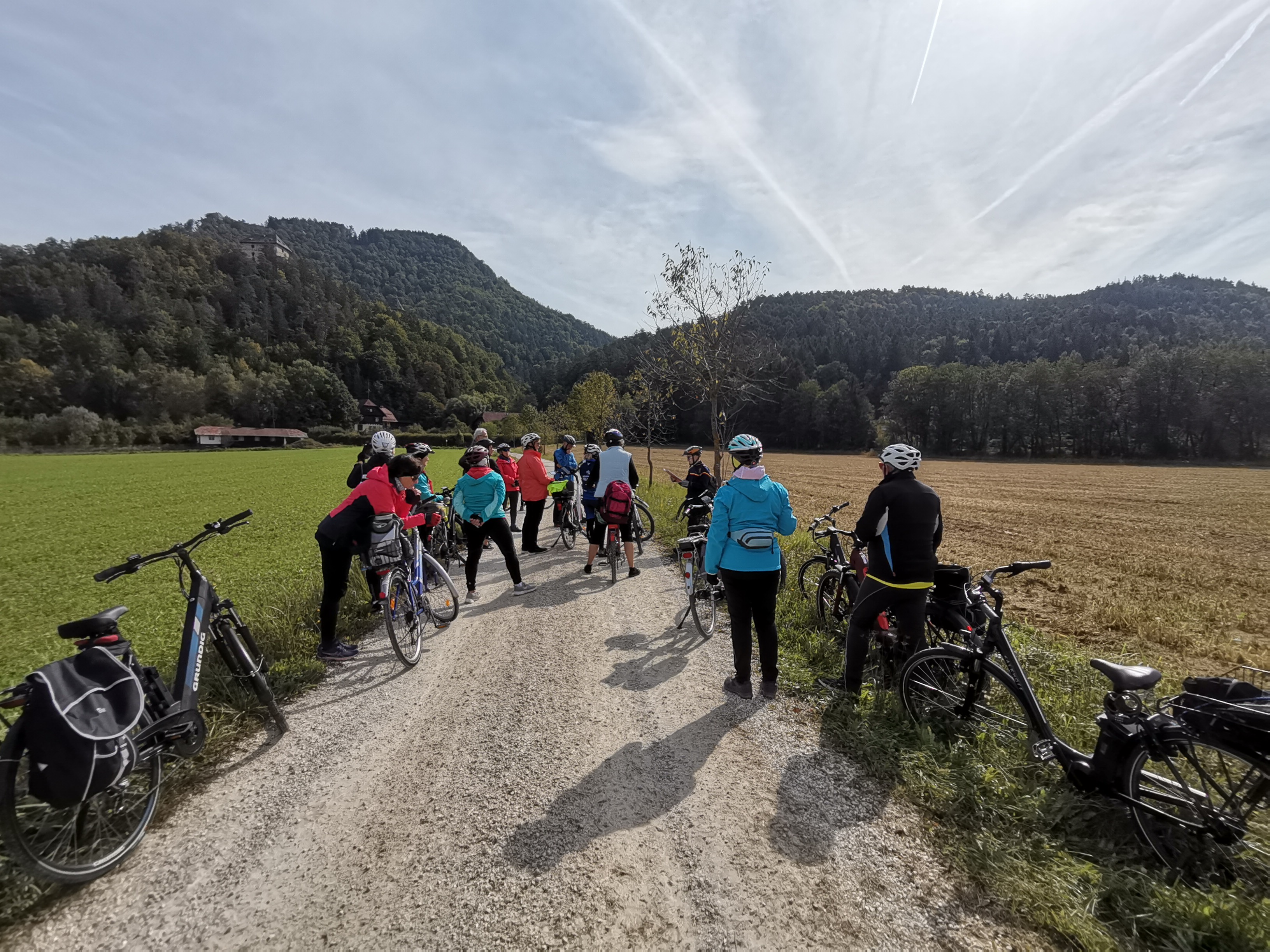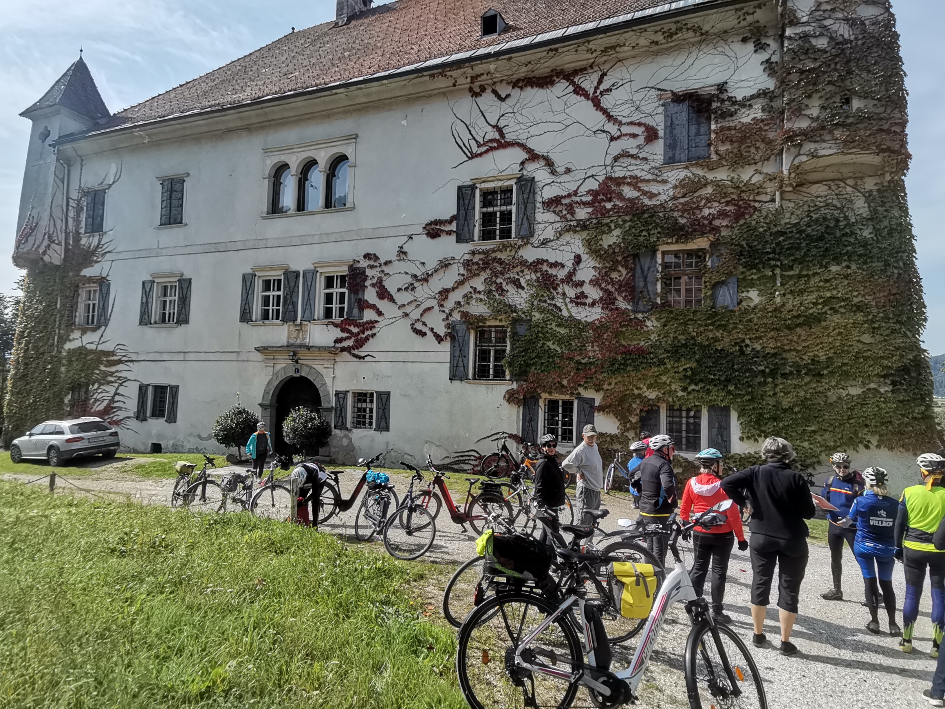 Die Zeitreise mit unserem Referenten Mathias Kuchernig war voller spannender Geschichten und schöner Fotomotive. Bereits wenige Kilometer von unserem Startpunkt in Bleiburg entfernt, hat uns die Drau ganz in Smaragdgrün begrüßt. Die erste Station lag direkt unterhalb der nach dem ehemaligen Landeshauptmann Jörg Haider benannten Draubrücke in der Schlucht des Lippitzbaches, wo Max Thaddäus Graf von Egger im späten 18. Jahrhundert ein Blechwalzwerk erbauen ließ. Entlang eines sehr gut beschilderten Radweges ging es weiter zur Pfarrkirche Hl. Magdalena in Ruden und zum romantischen Schloss Ehrnegg. Eine Herausforderung war der anschließende Aufstieg zur Burgruine Griffen, die im 12. Jahrhundert ursprünglich von den Bamberger Bischöfen erbaut wurde und später in den Besitz der Grafen von Egger überging. Unsere letzte Station war das ehemalige Prämonstratenser Chorherrenstift Griffen mit der spätromanischen Stiftskirche. Auch die letzten Kilometer bis zum Endpunkt dieses KULTUR RAD PFADES beim Bahnhof Kühnsdorf konnten wir einen sehr gut beschilderten Radweg nutzen, der uns am Hafen von Völkermarkt und nochmal über eine spektakuläre Draubrücke geführt hat.
