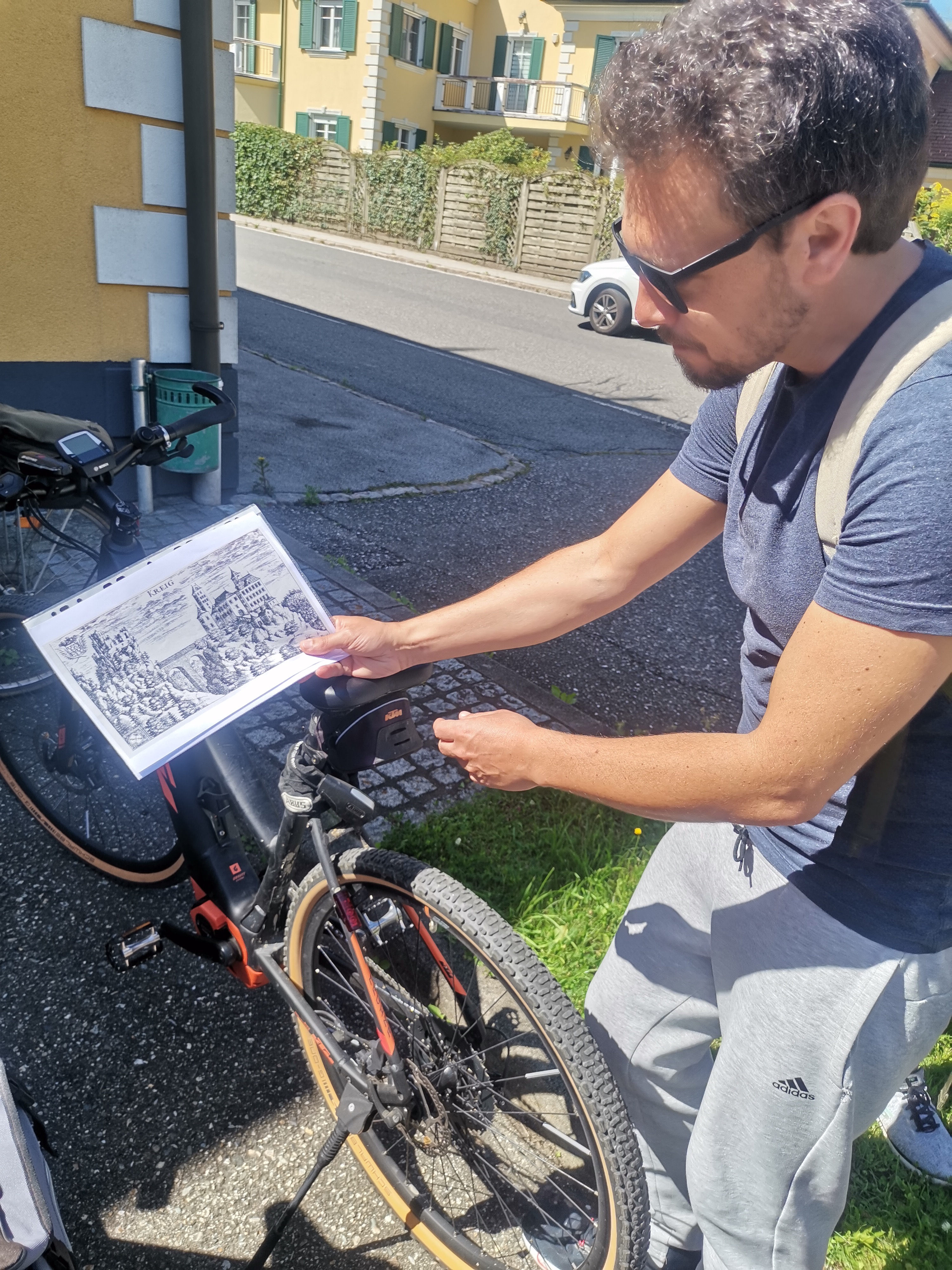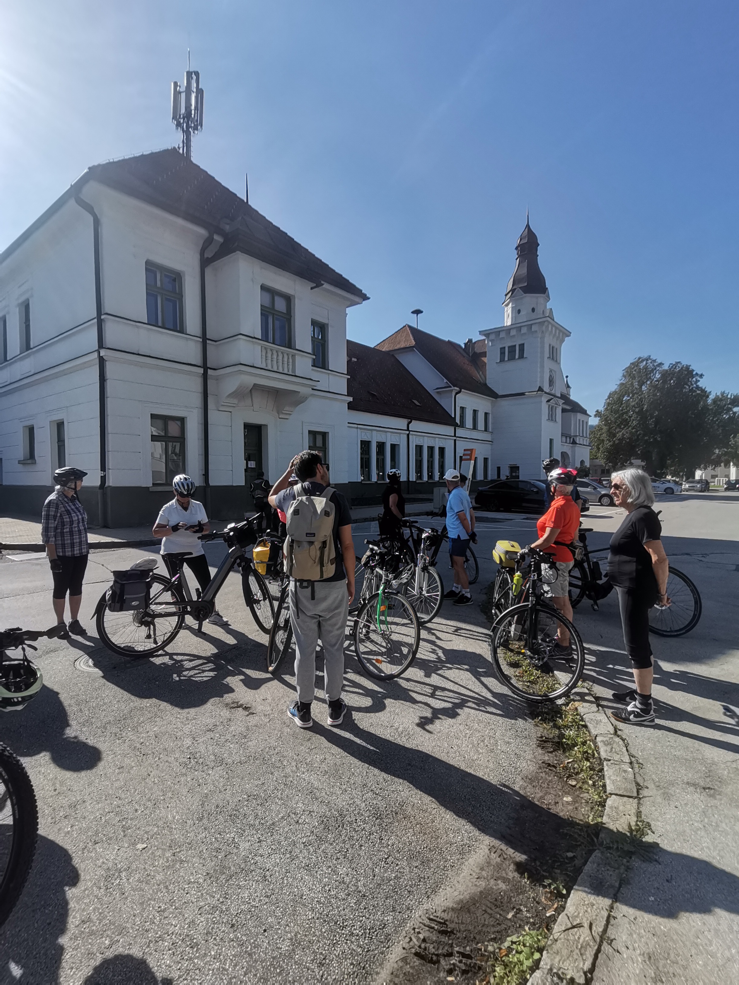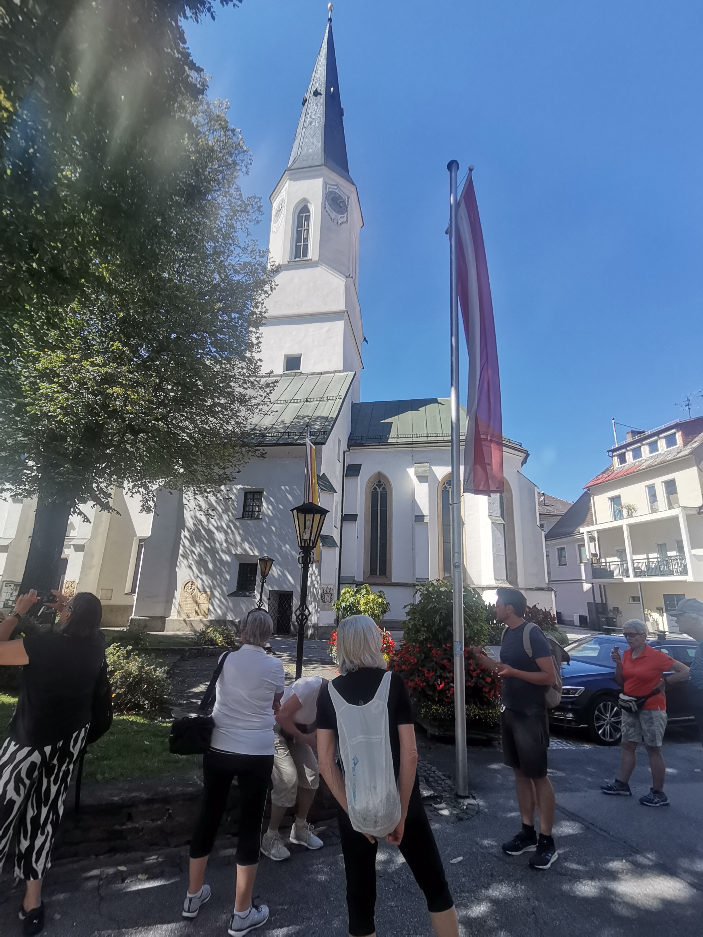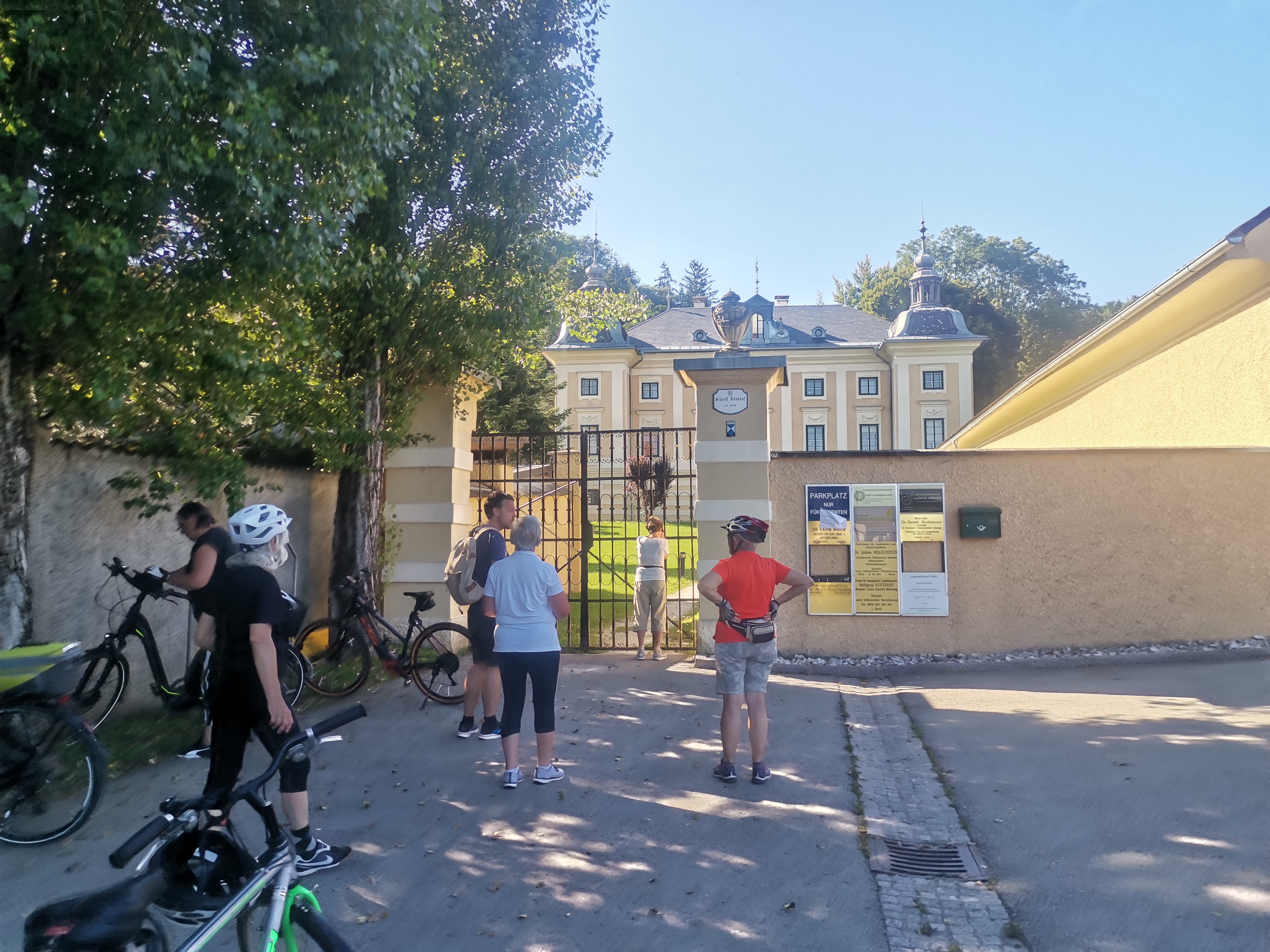 Nicht umsonst wird St. Veit als „Herzogsstadt“ bezeichnet. Überall in und um St. Veit stößt man auf Reste aus jener Zeit, als St. Veit das Zentrum der Kärntner Herzöge bildete. Vor allem die Familie Spanheimer, die zwischen 1122 und 1279 insgesamt neun Herzöge stellte und Städte wie St. Veit, Klagenfurt und Völkermarkt gründete, hat deutlich ihre Spuren hinterlassen. Unser Referent, der gebürtige St. Veiter Michael Jaritz, ließ die Geschichte der Herzöge und ihrer Gefolgsleute, den Rittern, Truchsessen und Marschällen bei Orten wie Schloss Hunnenbrunn, den Kraiger Schlössern und Schloss Frauenstein für uns wieder aufleben. Auch die Zwischenstationen, wie die einzigartige Kirchenanlage der Johanniskirche in Kraig und die Pfarrkirche Obermühlbach, wurden bereits während der Zeit der Spanheimer erstmals urkundlich erwähnt. Leider hatten wir aufgrund der vorangegangenen Unwetter keine Möglichkeit, wie eigentlich geplant, Burg Taggenbrunn zu besuchen. Noch ein Grund mehr, im nächsten Jahr einen zweiten Teil unserer Radreise durch das Zentrum der Herzöge von Spanheim zu starten.