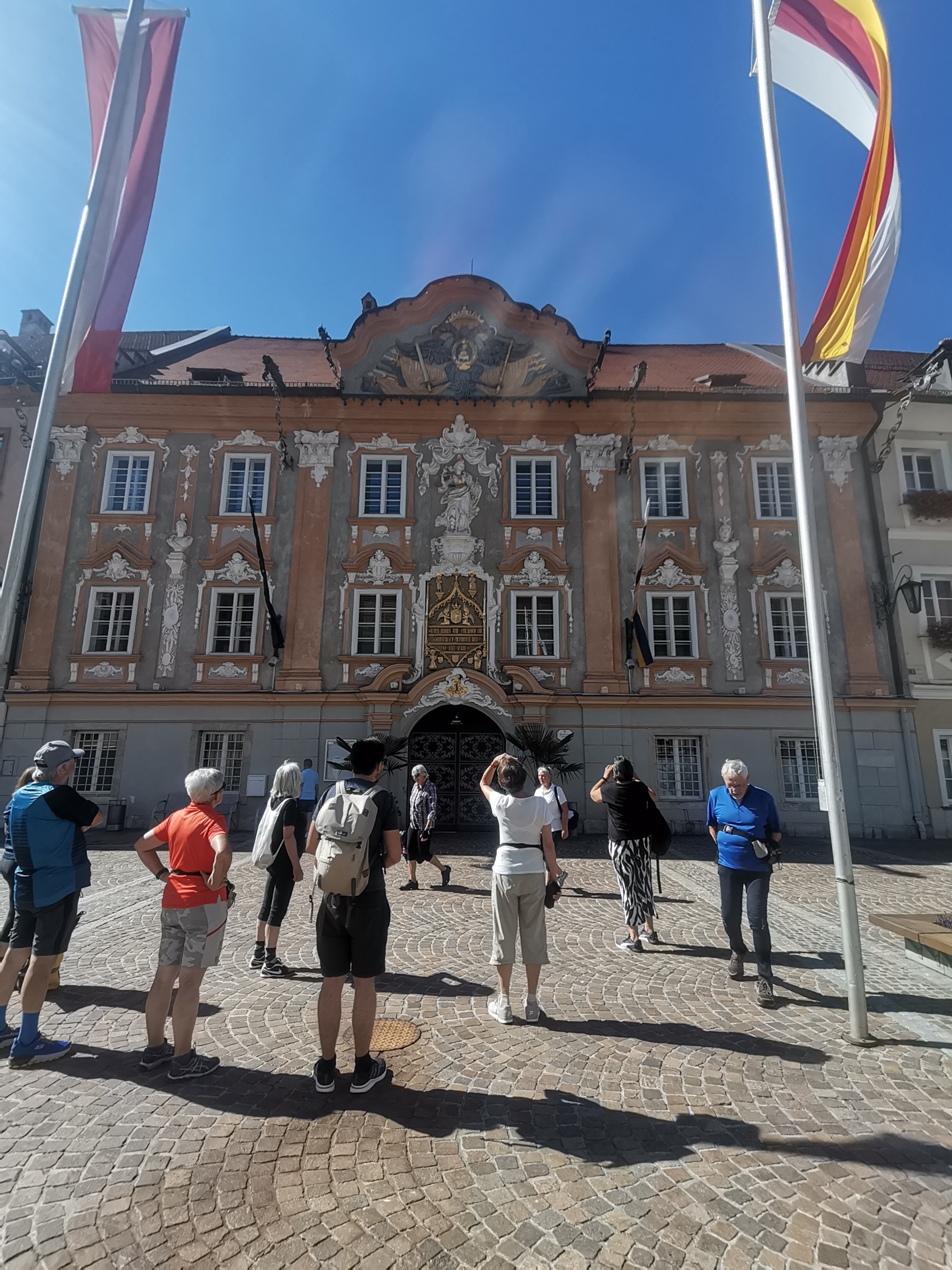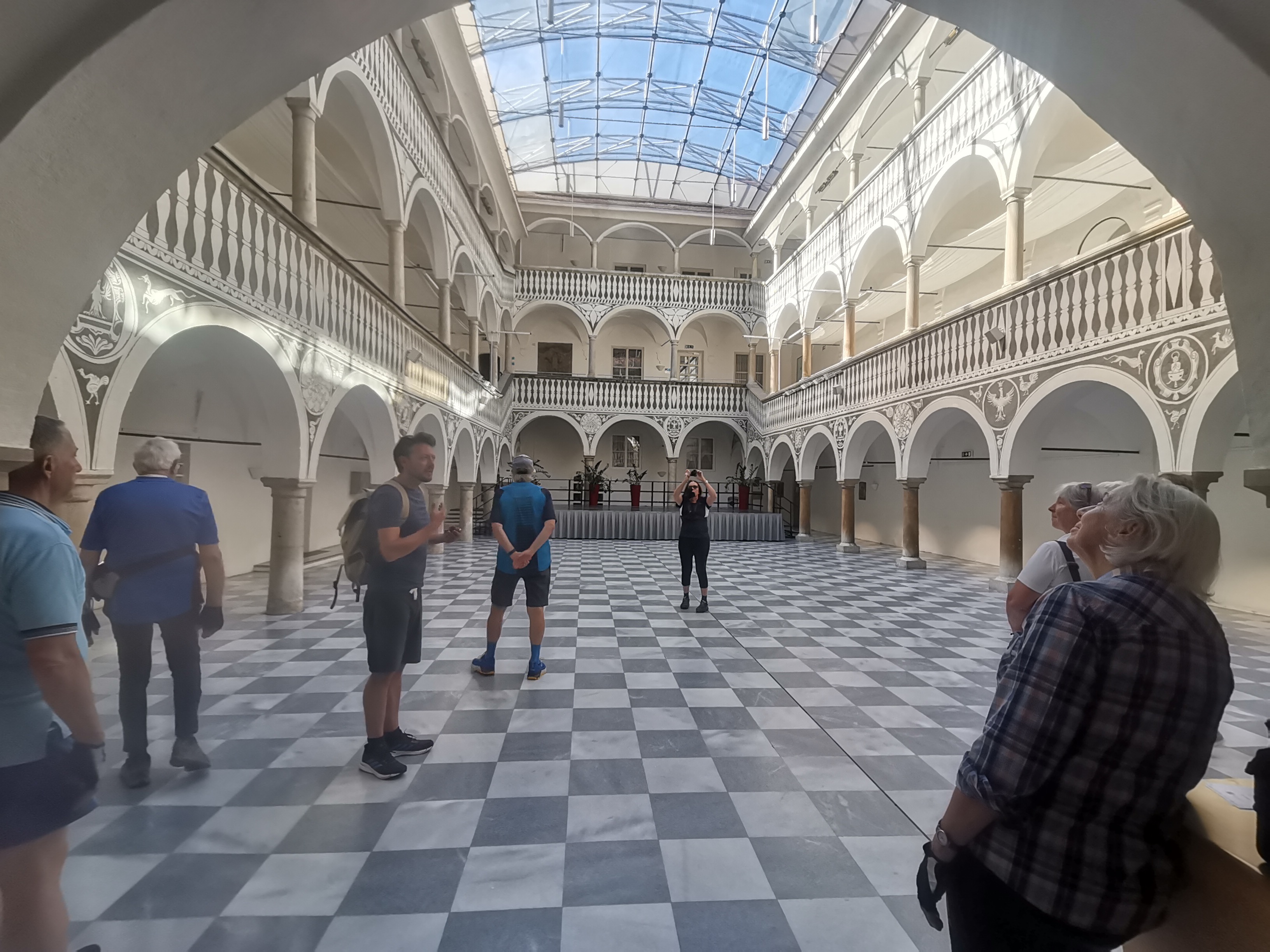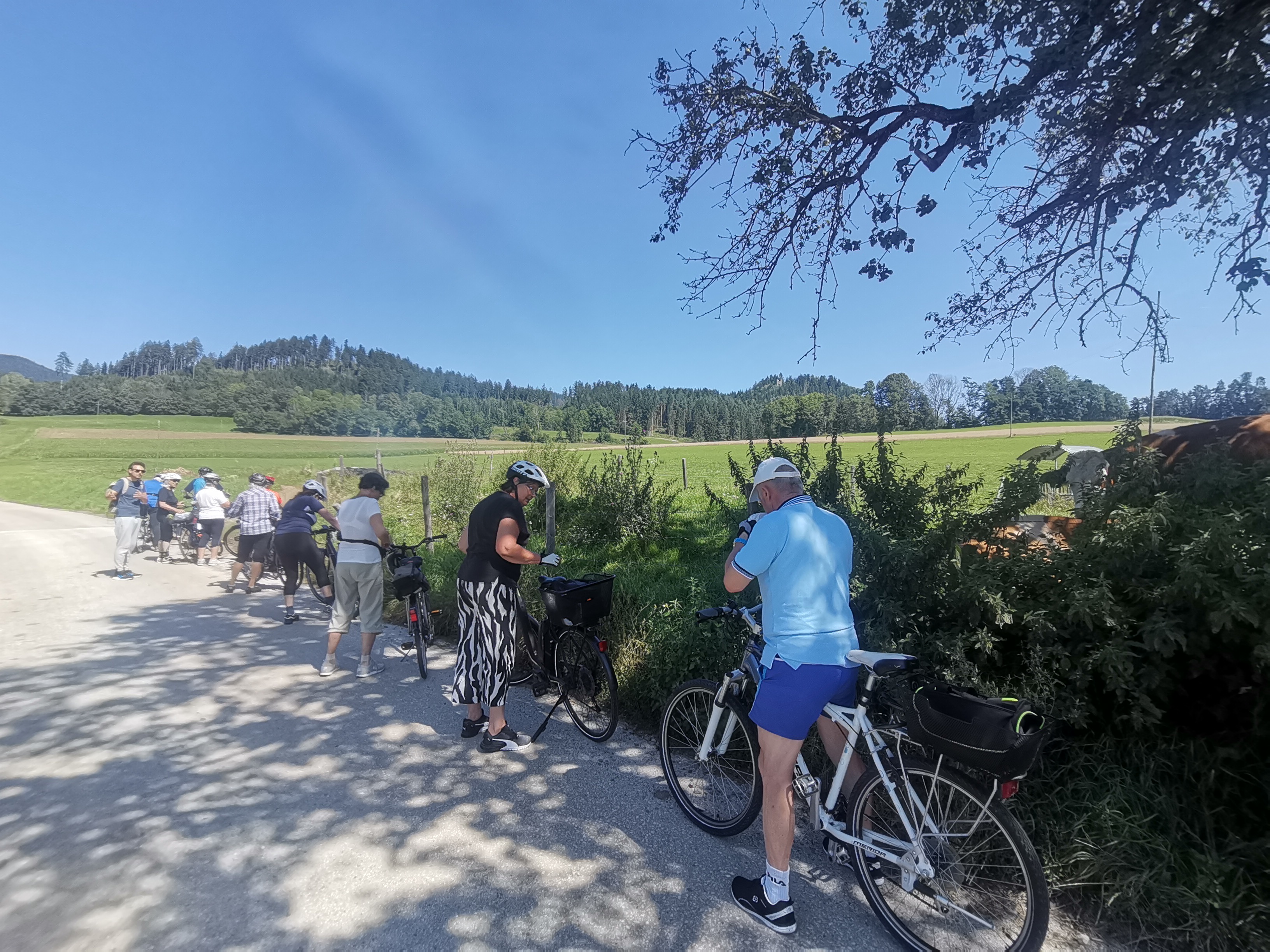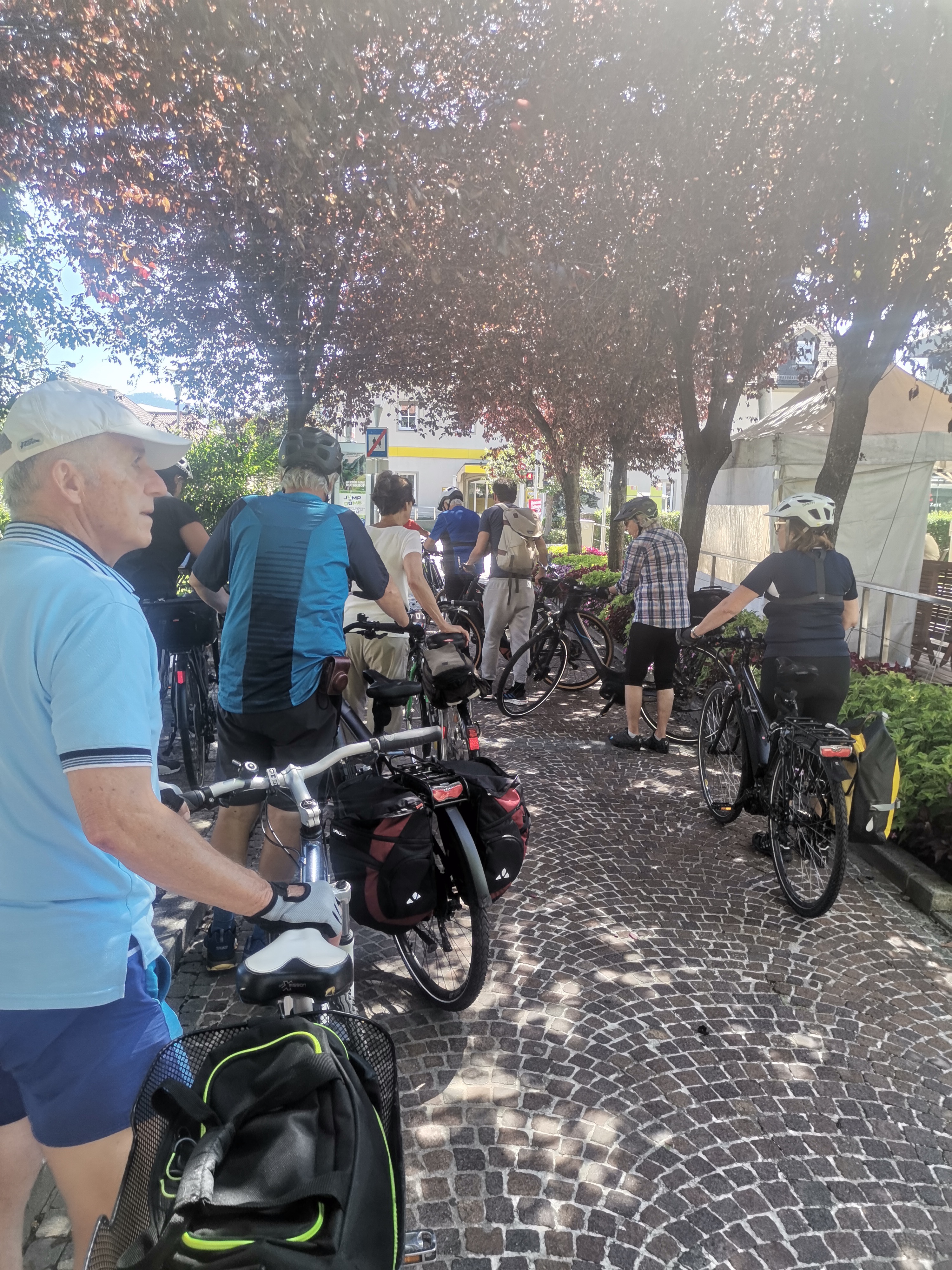Nicht umsonst wird St. Veit als „Herzogsstadt“ bezeichnet. Überall in und um St. Veit stößt man auf Reste aus jener Zeit, als St. Veit das Zentrum der Kärntner Herzöge bildete. Vor allem die Familie Spanheimer, die zwischen 1122 und 1279 insgesamt neun Herzöge stellte und Städte wie St. Veit, Klagenfurt und Völkermarkt gründete, hat deutlich ihre Spuren hinterlassen. Unser Referent, der gebürtige St. Veiter Michael Jaritz, ließ die Geschichte der Herzöge und ihrer Gefolgsleute, den Rittern, Truchsessen und Marschällen bei Orten wie Schloss Hunnenbrunn, den Kraiger Schlössern und Schloss Frauenstein für uns wieder aufleben. Auch die Zwischenstationen, wie die einzigartige Kirchenanlage der Johanniskirche in Kraig und die Pfarrkirche Obermühlbach, wurden bereits während der Zeit der Spanheimer erstmals urkundlich erwähnt. Leider hatten wir aufgrund der vorangegangenen Unwetter keine Möglichkeit, wie eigentlich geplant, Burg Taggenbrunn zu besuchen. Noch ein Grund mehr, im nächsten Jahr einen zweiten Teil unserer Radreise durch das Zentrum der Herzöge von Spanheim zu starten.