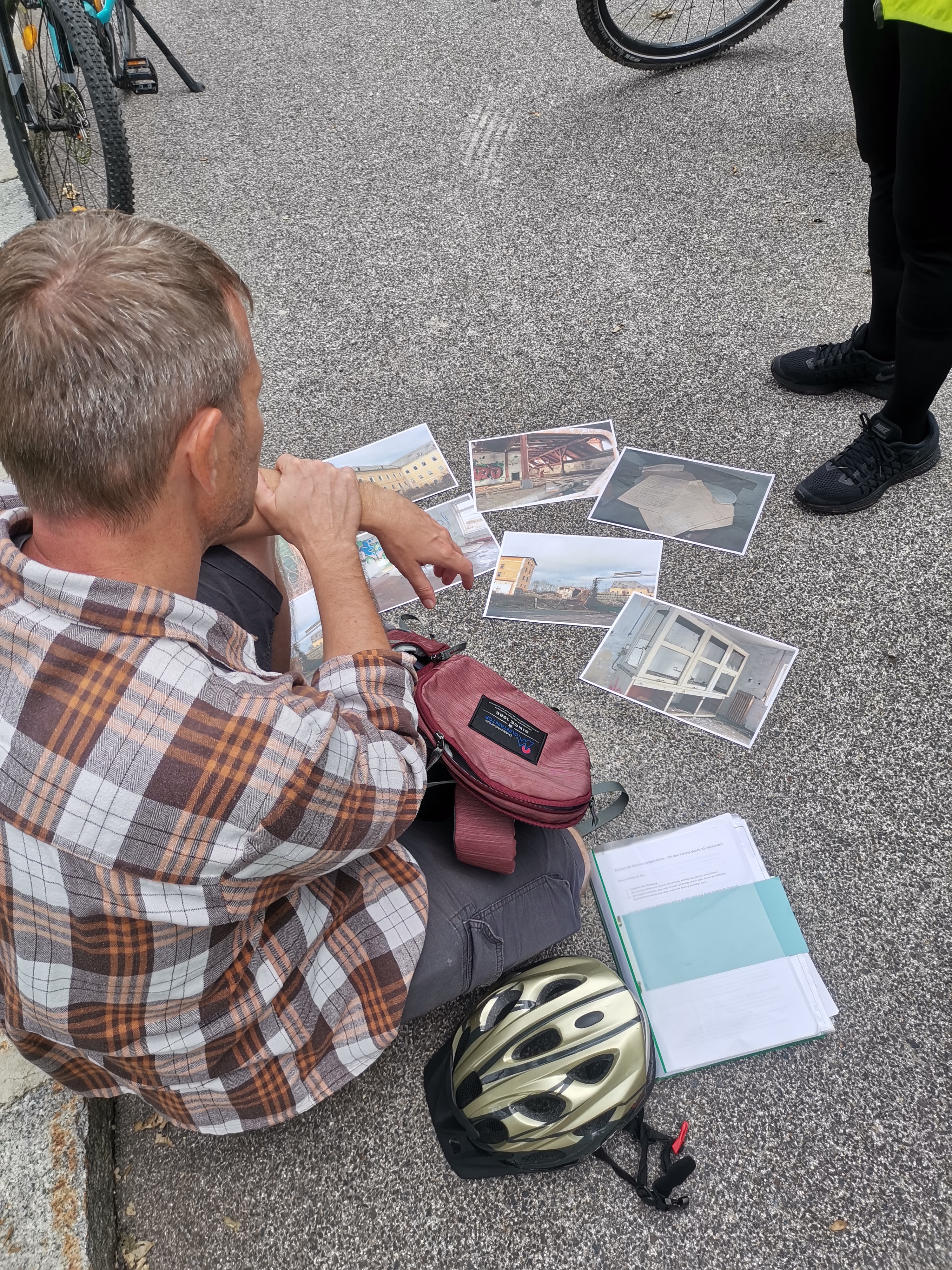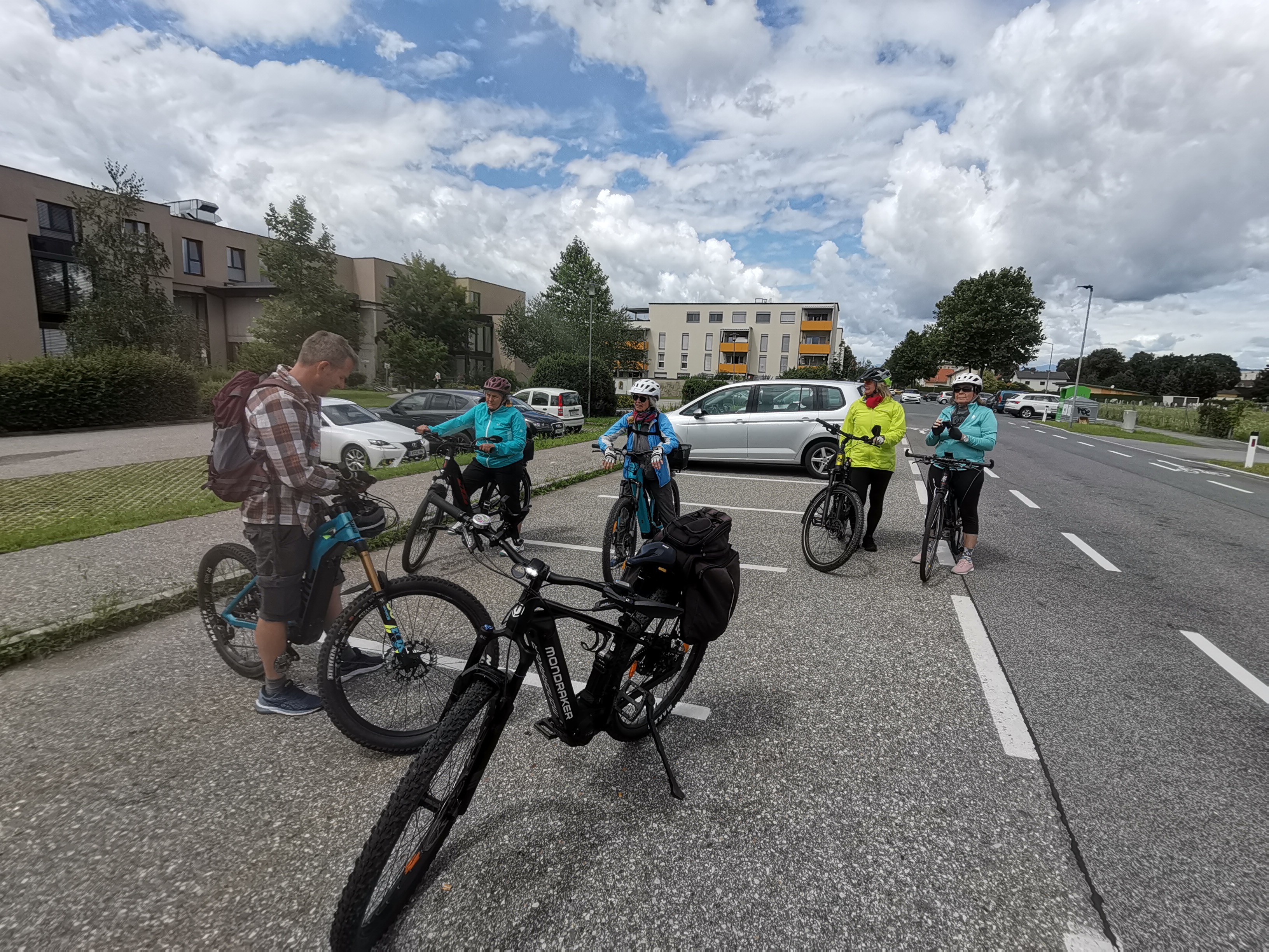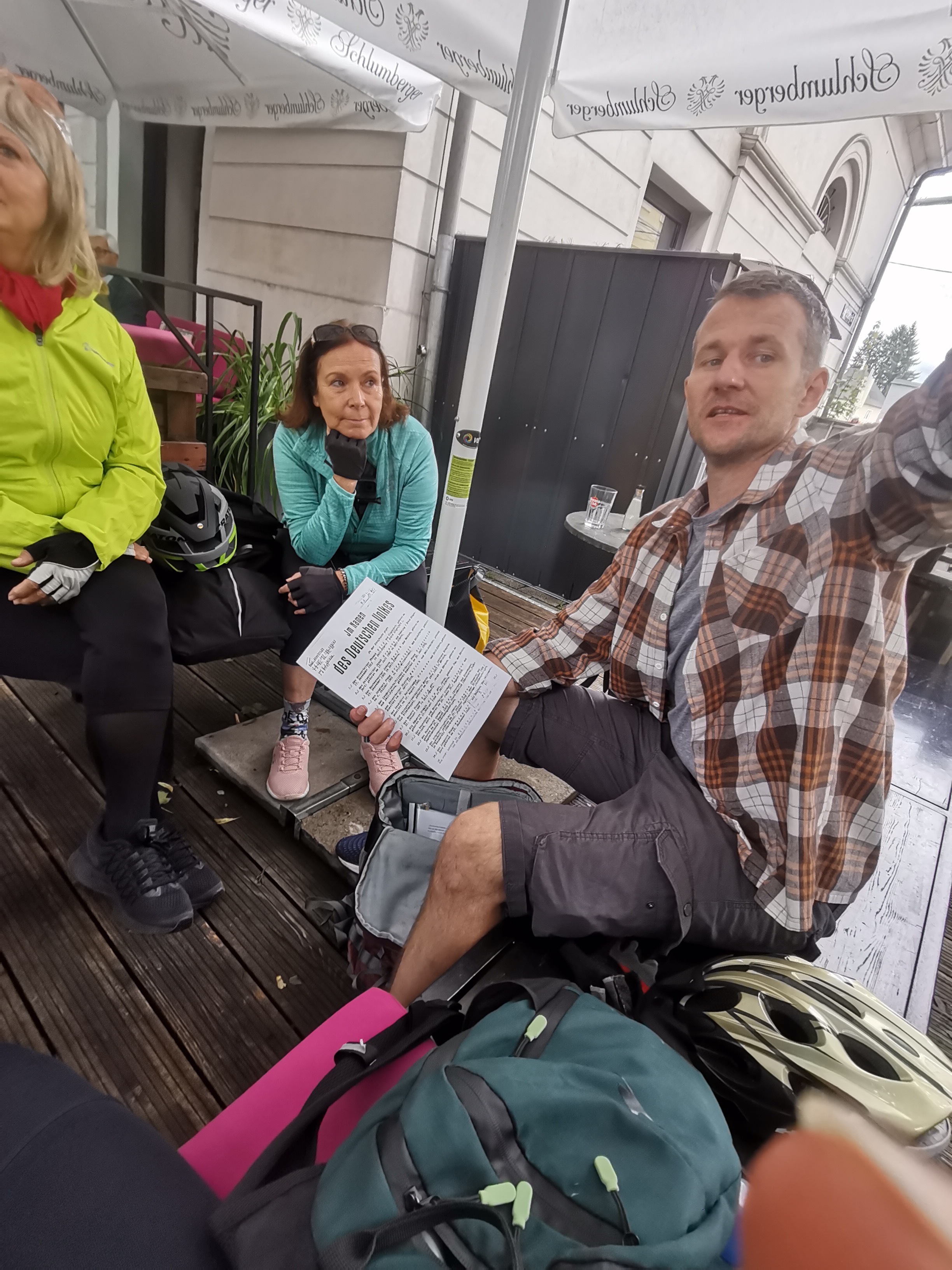 Klein und fein war die Runde, die Florian Kerschbaumer quer durch Klagenfurt geführt hat. Auch wenn der Titel dieses KULTUR RAD PFADES vielleicht etwas trocken erscheint – die Ausführungen unseres Referenten waren es nicht! Anhand von Gegenständen, die für uns heute zum Alltag gehören, aber in ihren Anfängen oft zu Ablehnung oder zu Konflikten geführt haben (wie beispielsweise das Fahrrad), konnten wir ein ganz neues Bewusstsein für die Vergangenheit gewinnen. Themen waren außerdem die berühmten Wörtherseefilme, die Universität Klagenfurt und die ehemalige Fischl-Fabrik. Passend zur Thematik der nationalsozialistischen Justiz hat uns vor dem Landesgericht Klagenfurt kurz der Regen erwischt, den wir im gegenüberliegenden Parkhauscafé bei intensiven Gesprächen „aussitzen“ konnten.