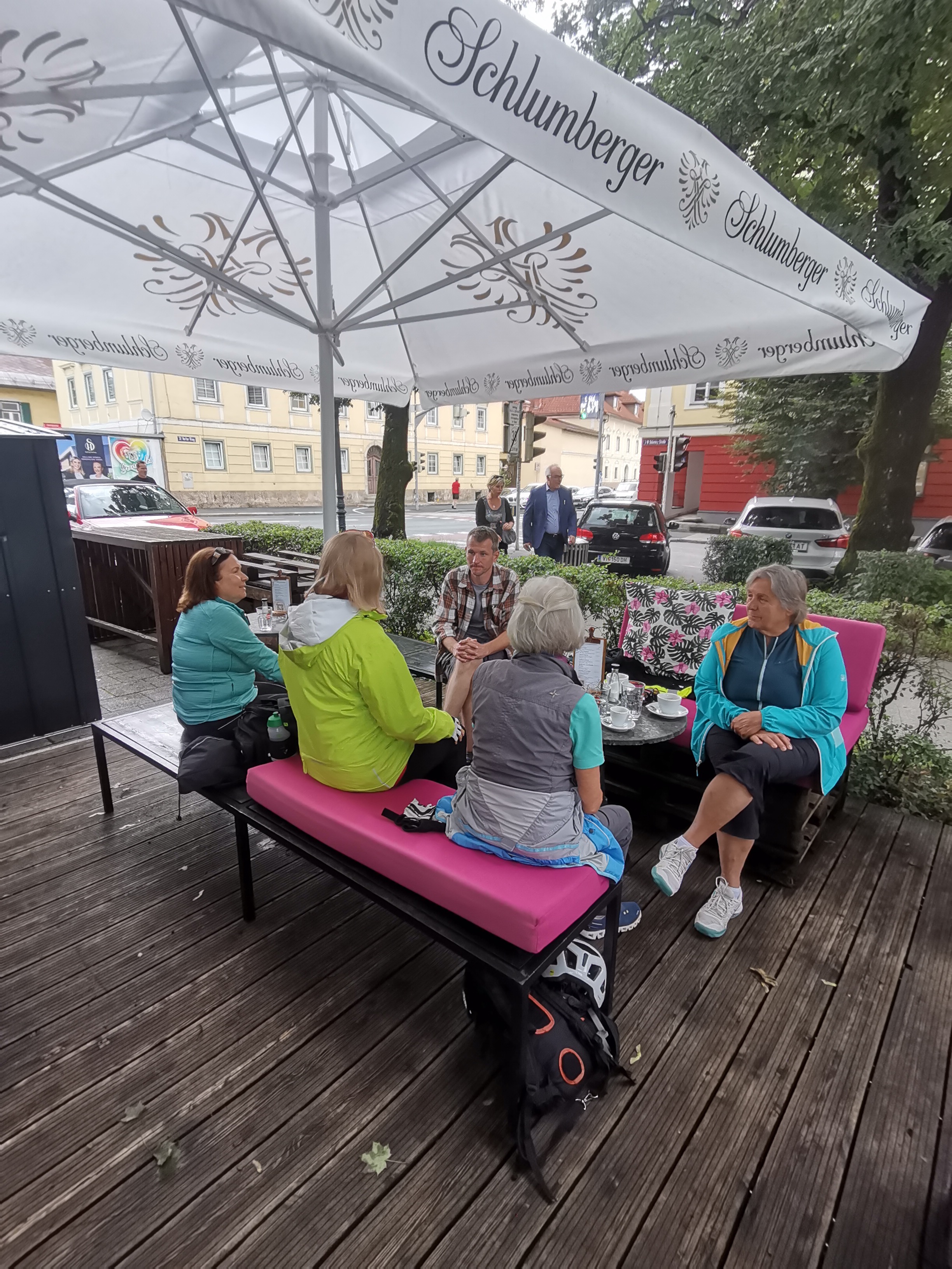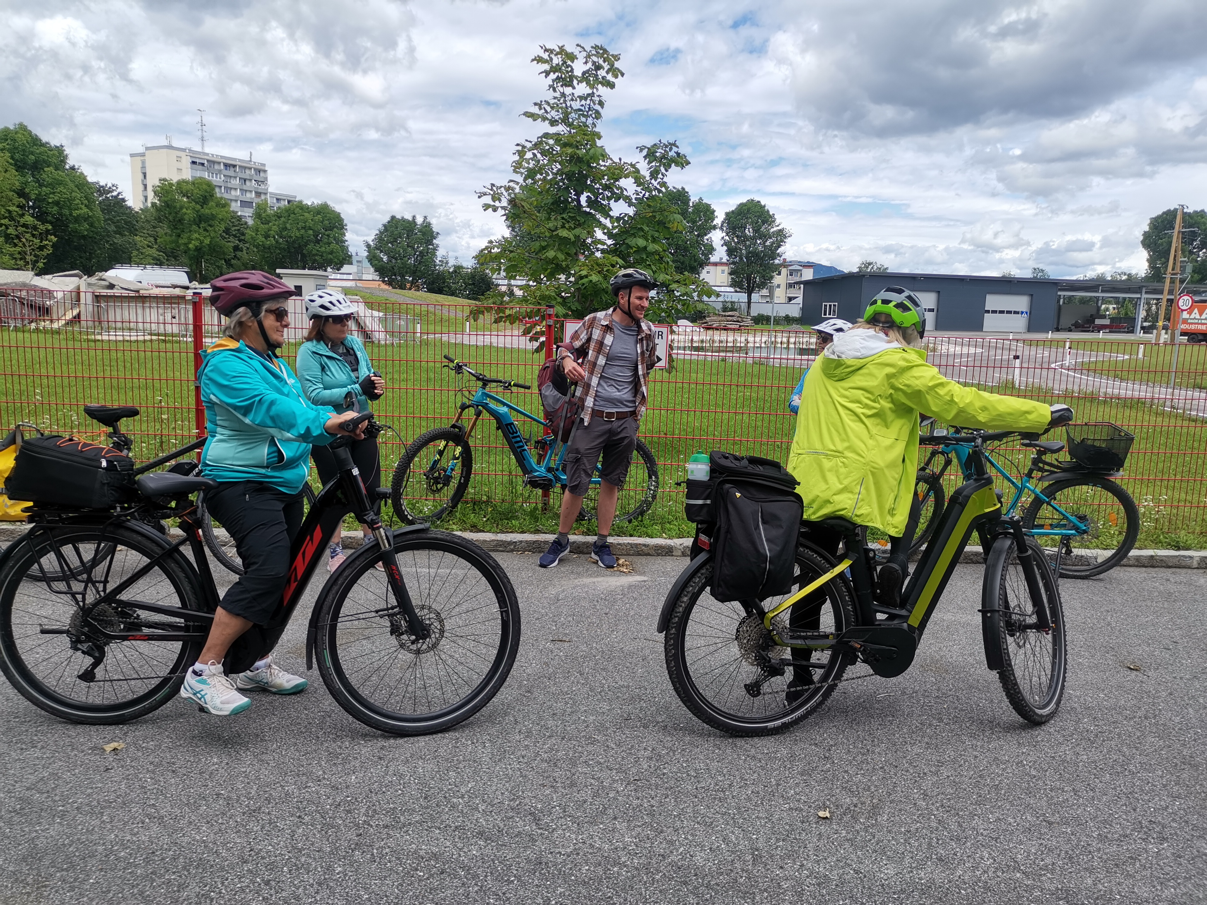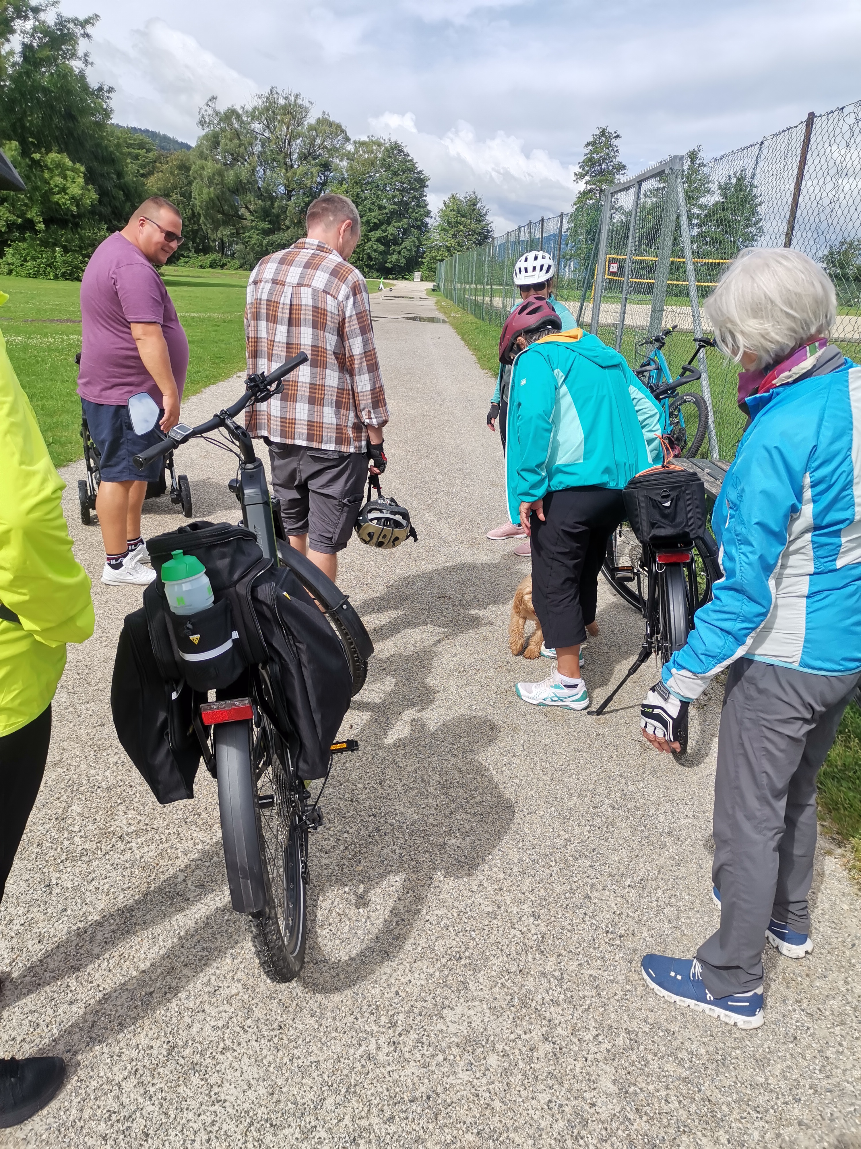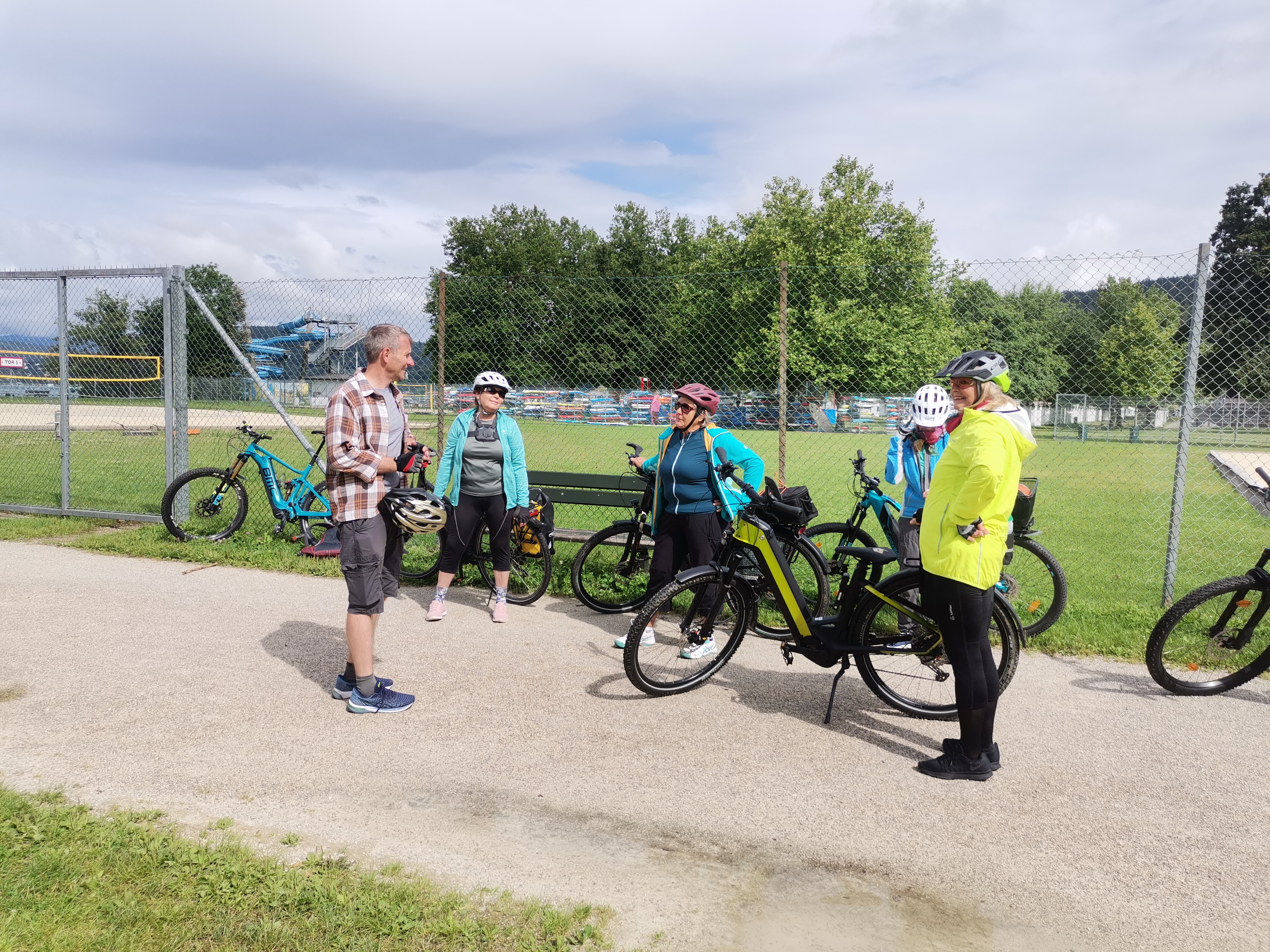 Klein und fein war die Runde, die Florian Kerschbaumer quer durch Klagenfurt geführt hat. Auch wenn der Titel dieses KULTUR RAD PFADES vielleicht etwas trocken erscheint – die Ausführungen unseres Referenten waren es nicht! Anhand von Gegenständen, die für uns heute zum Alltag gehören, aber in ihren Anfängen oft zu Ablehnung oder zu Konflikten geführt haben (wie beispielsweise das Fahrrad), konnten wir ein ganz neues Bewusstsein für die Vergangenheit gewinnen. Themen waren außerdem die berühmten Wörtherseefilme, die Universität Klagenfurt und die ehemalige Fischl-Fabrik. Passend zur Thematik der nationalsozialistischen Justiz hat uns vor dem Landesgericht Klagenfurt kurz der Regen erwischt, den wir im gegenüberliegenden Parkhauscafé bei intensiven Gesprächen „aussitzen“ konnten.
