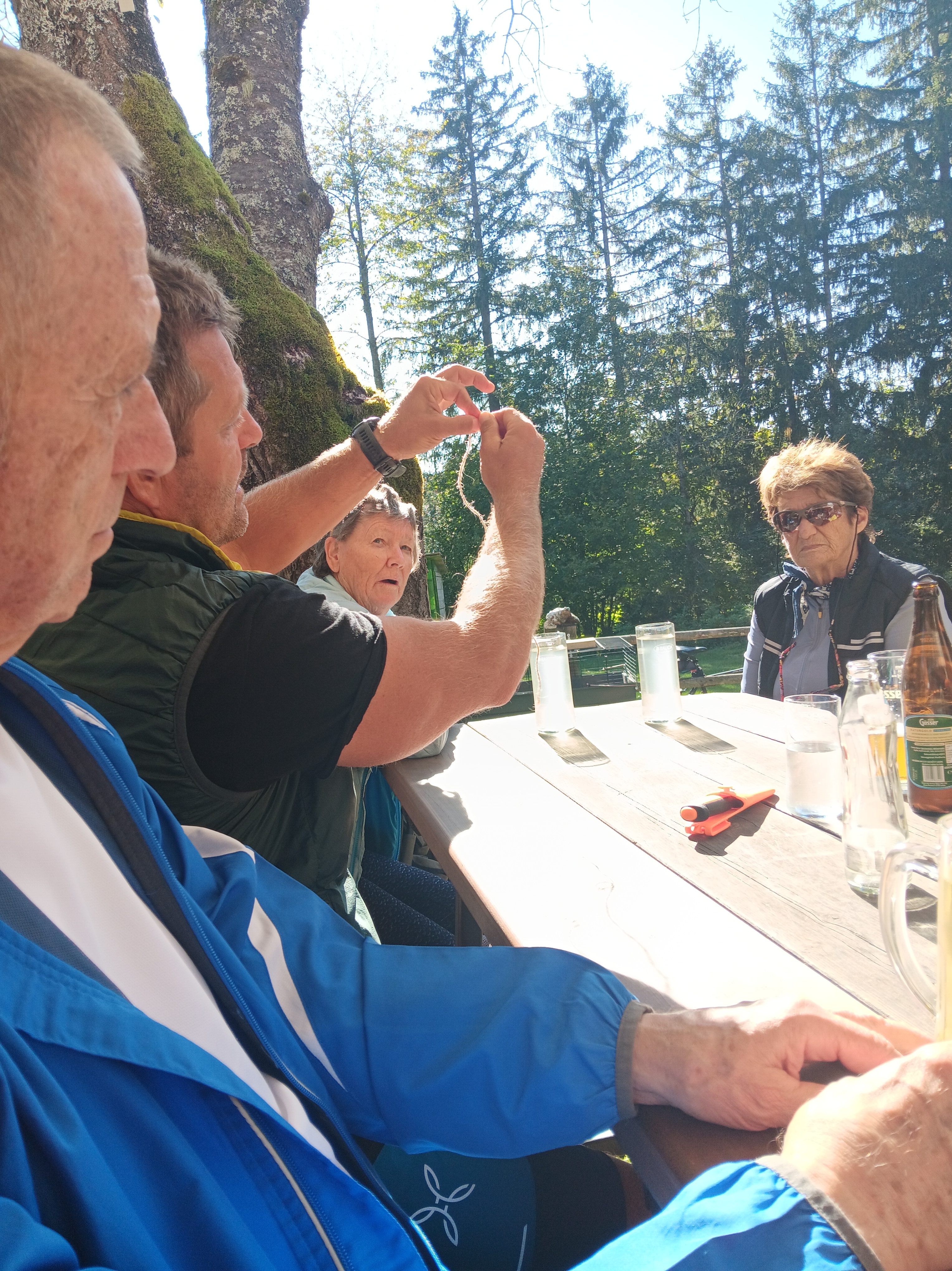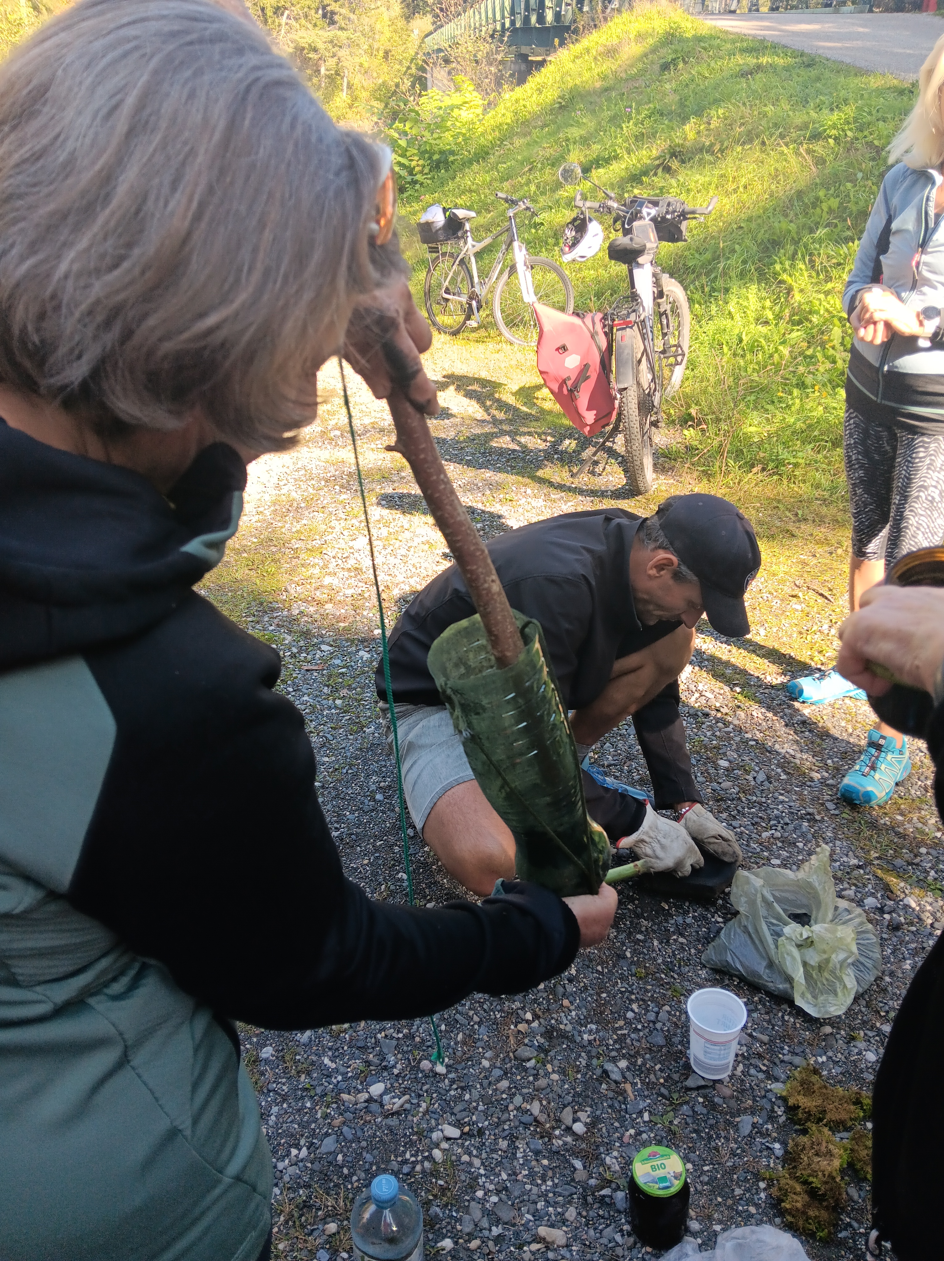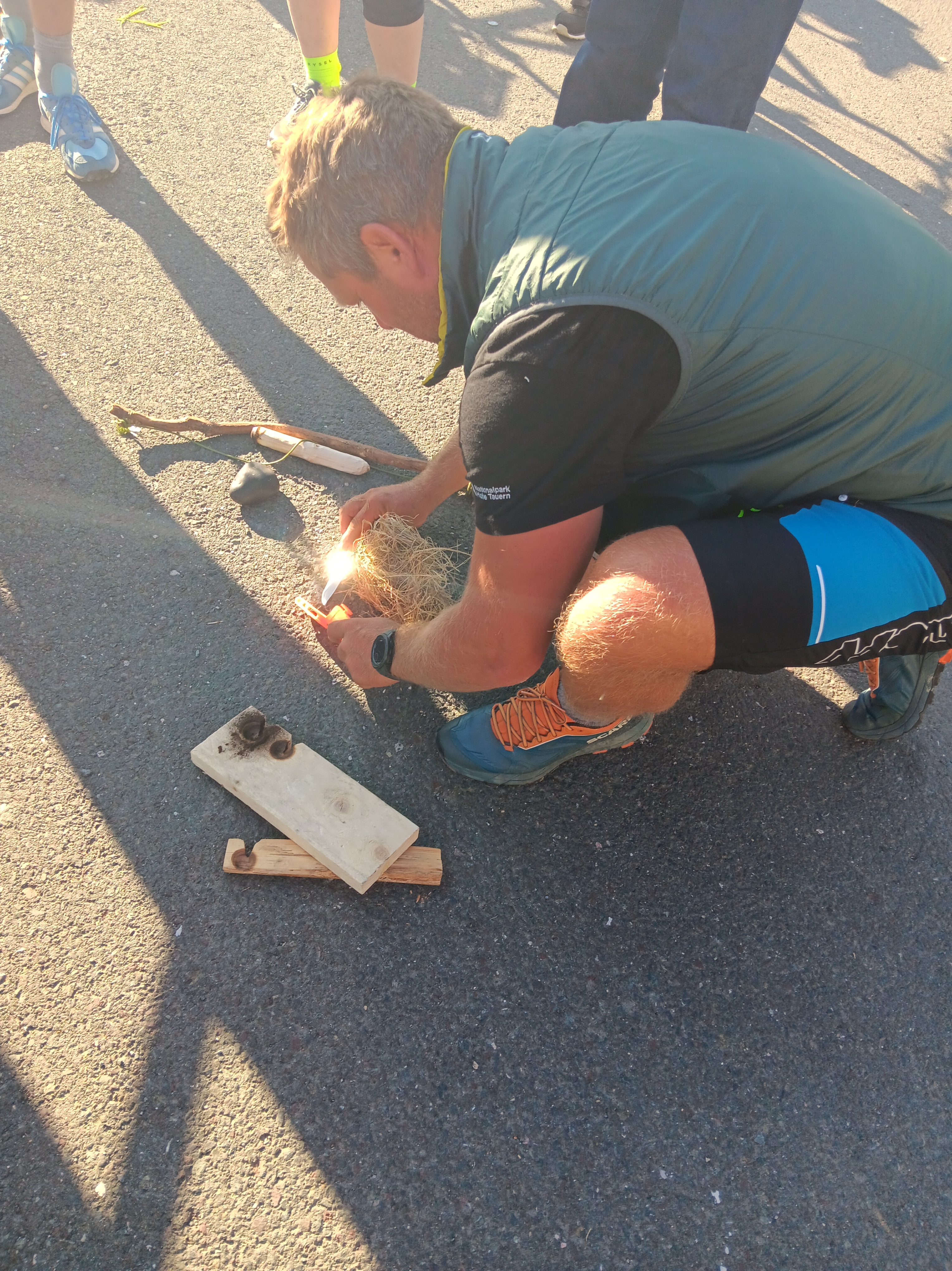 Bei diesem KULTUR RAD PFAD war nicht nur der Einsatz des Referenten gefragt, sondern auch der Teilnehmer/innen. Alle haben sich fleißig in der Zunder Vorbereitung versucht und gemeinsam nach den Anleitungen von Paul Ulrich einen Sediment-Wasserfilter konstruiert. Der Jäger und Sammler ist bei allen beim Suchen der Materialien so richtig zum Vorschein gekommen. Wie spannend das Thema Feuer ist, hat Paul´s abschließende Vorführung gezeigt – der Zug für die Heimfahrt war bereits in Sicht, aber keiner wollte sich so richtig losreißen. Was uns diese Survival-Tour vor Augen geführt hat: Als moderne Zivilisationsmenschen gehen wir viel zu unbewusst und unbedacht durch die Natur, weshalb wir in entscheidenden Momenten, in denen es wirklich ums Überleben ginge, vermutlich die falschen Prioritäten setzen würden. Da ein KULTUR RAD PFAD für dieses umfangreiche Thema nicht ausreicht, wird es wohl im nächsten Jahr einen Teil 2 geben.